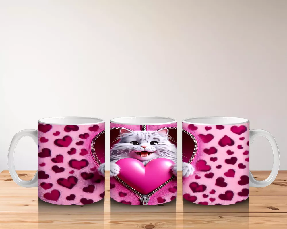Kalpli Yastığa Sarılmış Gri Kedi – Baskılı Kahve Kupası