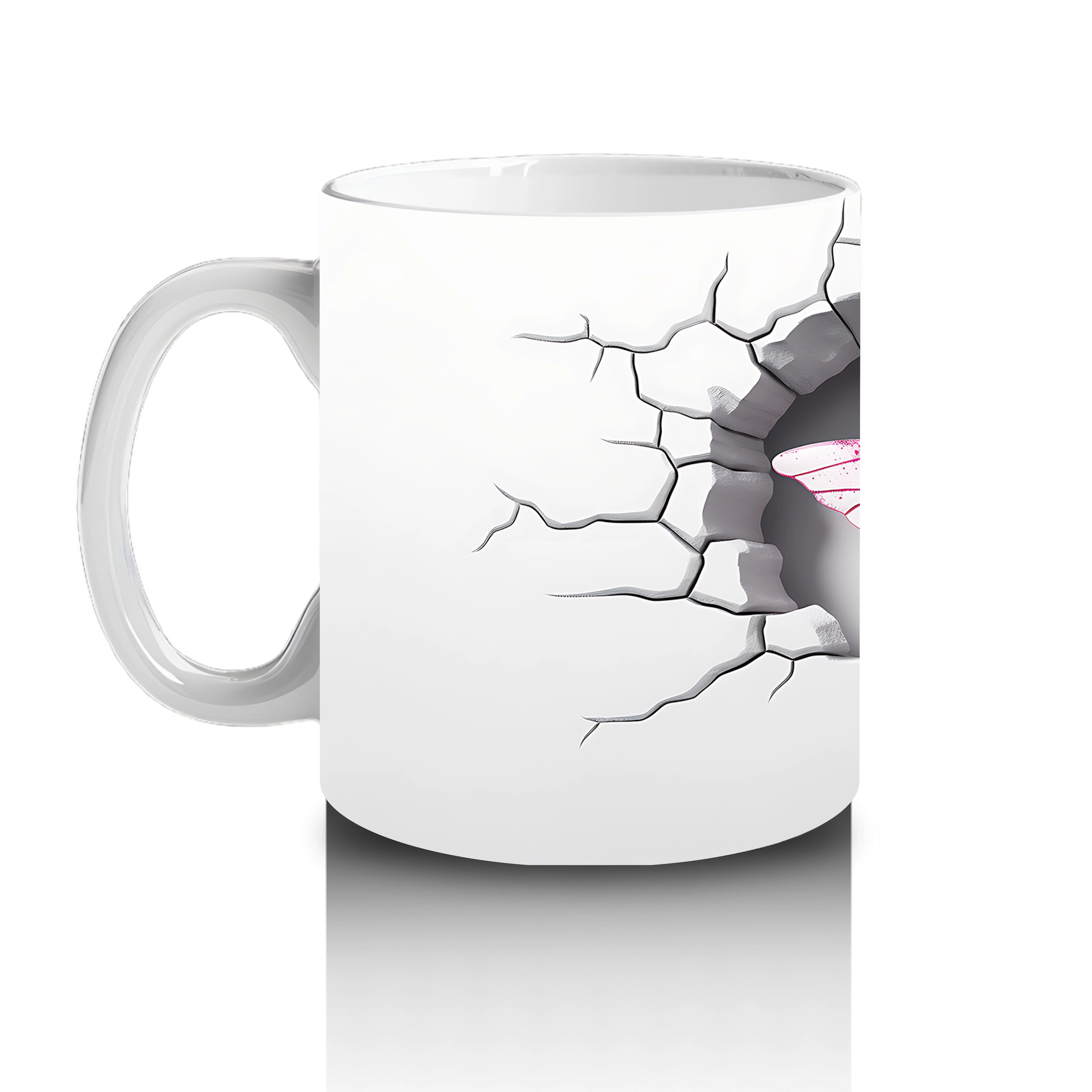 Gri Çatlak Zeminde Kalp Şeklinde Pembe Yusufçuk – Baskılı Kahve Kupası