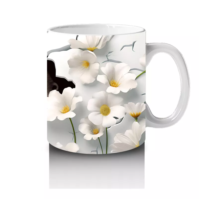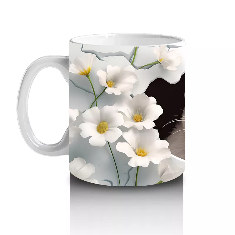 Beyaz çiçeklerin arasında gülümseyen bu sevimli ayı figürü, neşesiyle sıcak ve içten bir hava katıyor. Doğayla iç içe, şirin ve huzur verici bir kupa modeli arayanlar için birebir.