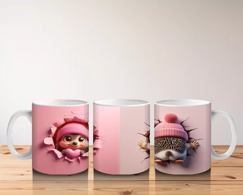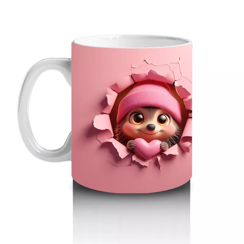 Çatlak duvarın arasından gülümseyerek bakan oyuncak kirpi, eğlenceli ve içten bir enerji yayıyor. Mizahi ve sevimli figürleri sevenler için neşeli bir tasarım.