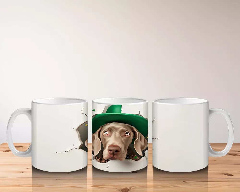 St. Patrick Şapkalı Gülümseyen Köpek – Baskılı Kahve Kupası