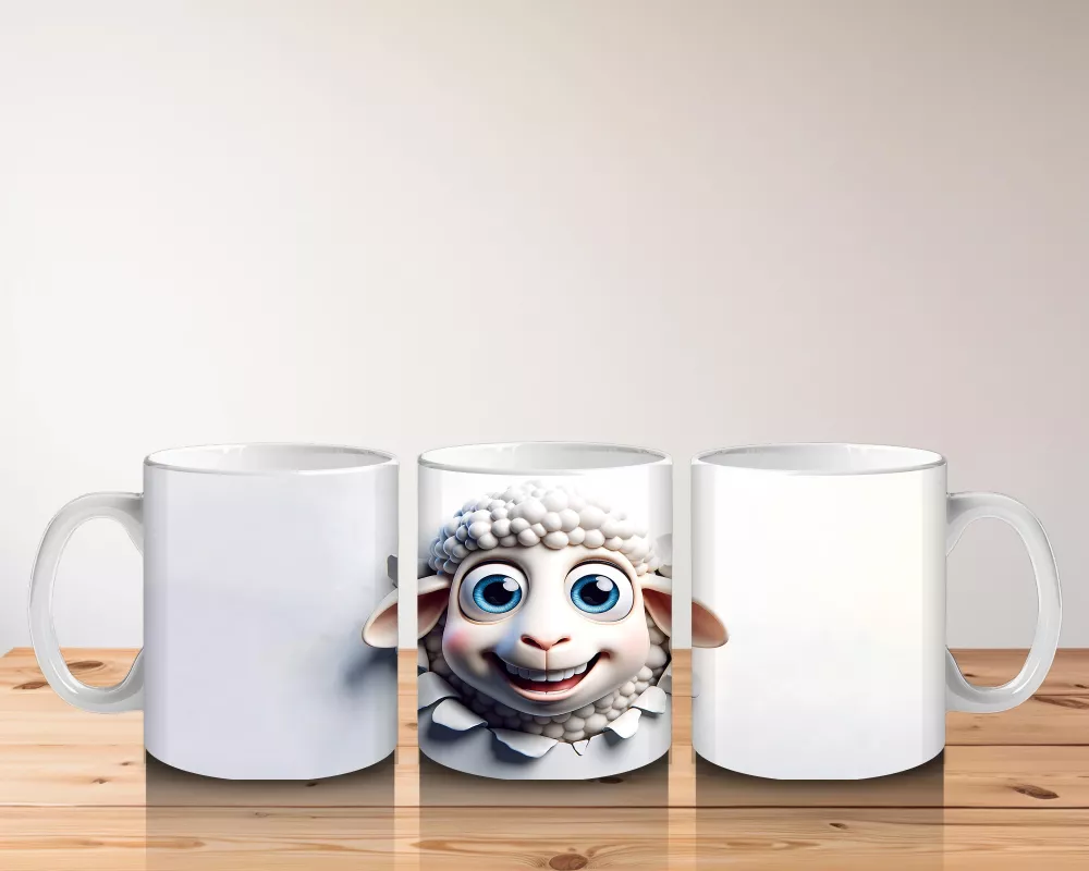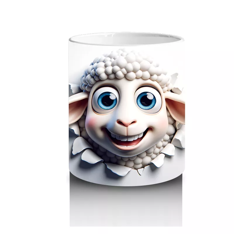 Gülümseyen Mavi Gözlü Sevimli Kuzu – Baskılı Kahve Kupası