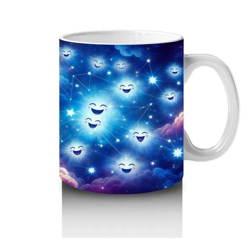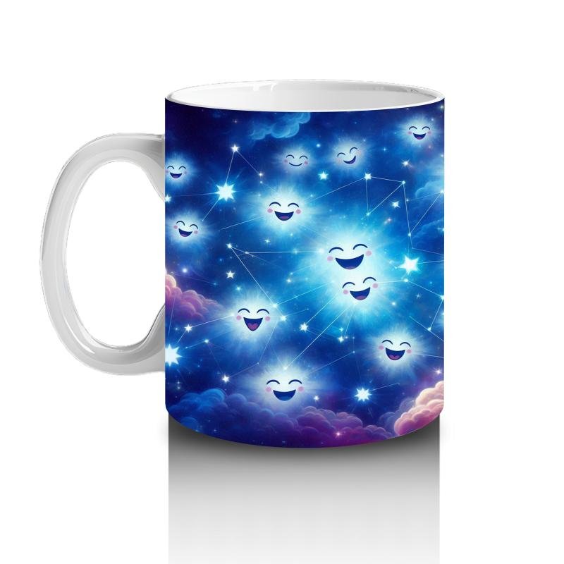 Çocuklara Sütü Sevdiren Gülümseyen Yıldızlar ve Galaksi Desenli Kupa Bardak