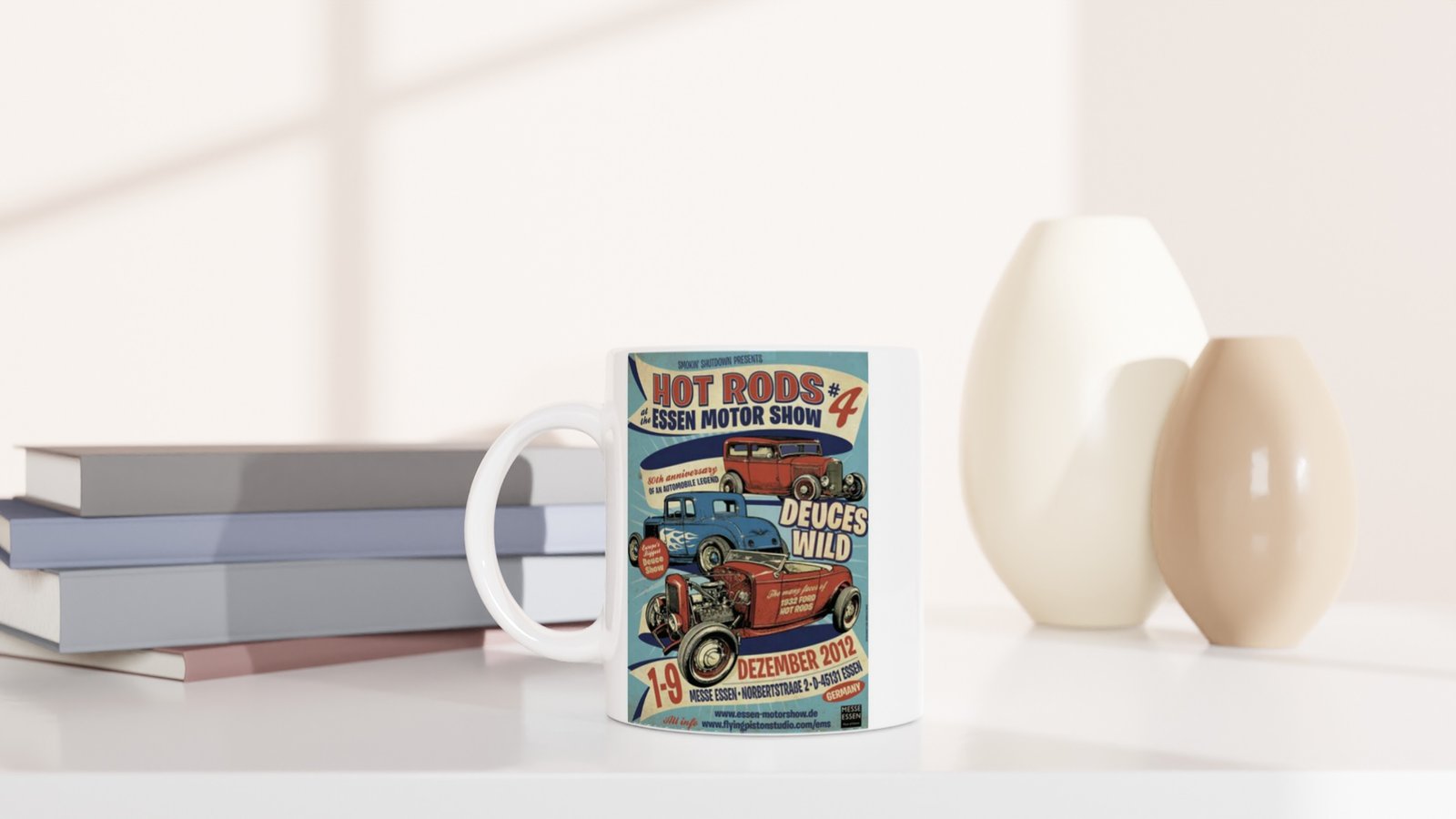 1932 Ford Hot Rod'larının farklı yüzlerini kutlayan bu özel baskılı kupa, vintage araba meraklılarına nostaljik bir deneyim sunuyor.