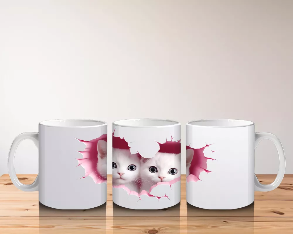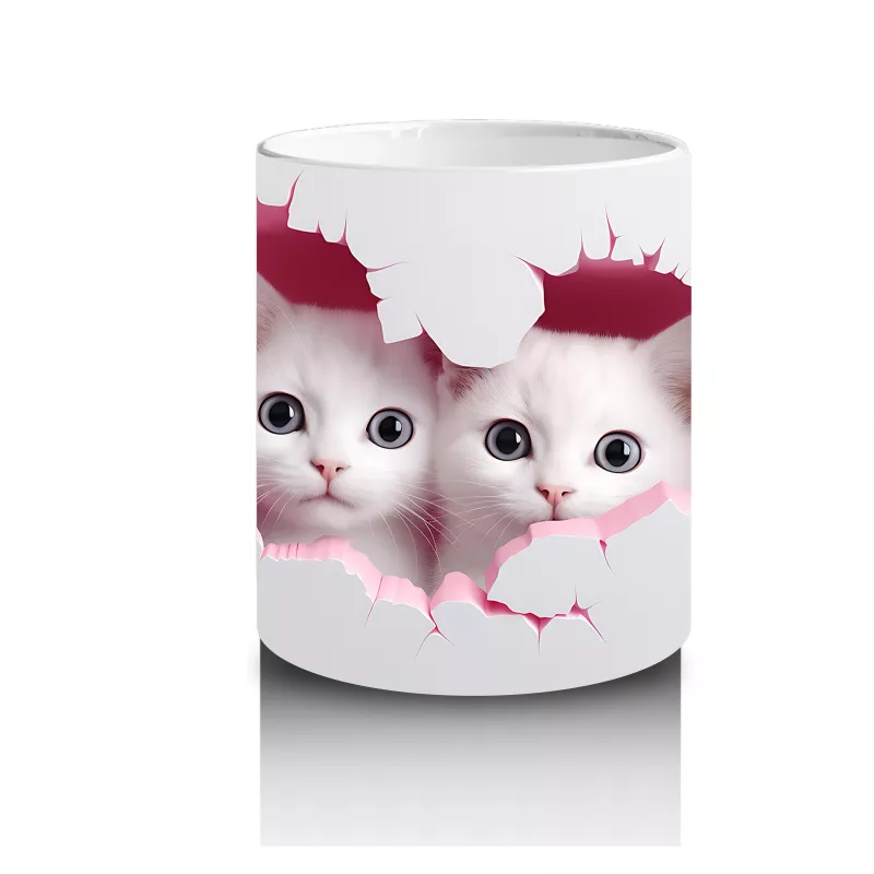 Pembe Kalplerle Süslenmiş İkiz Kedi Yavruları – Baskılı Kahve Kupası