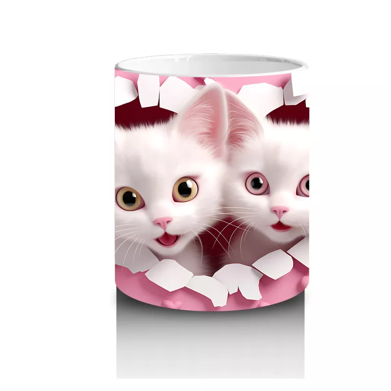 Kalp şeklindeki çatlağın içinden sevgiyle bakan ikiz kediler, dostluk ve bağlılığı simgeliyor. Kedi severler için romantik ve sevimli bir hediye alternatifi.