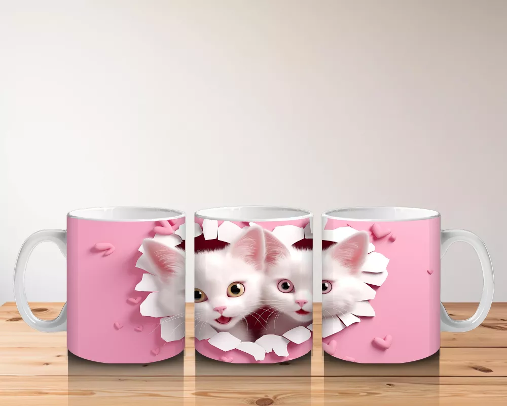 Kalp Şeklindeki Çatlaktan Bakan İkiz Kediler – Baskılı Kahve Kupası