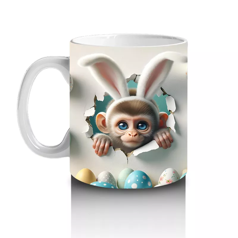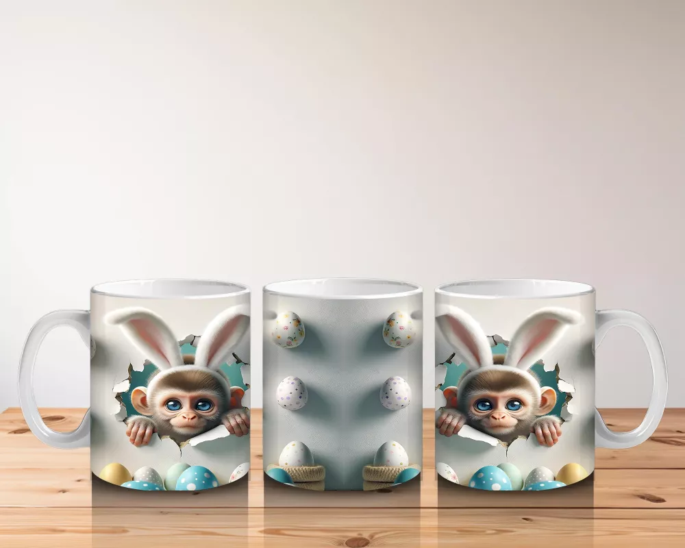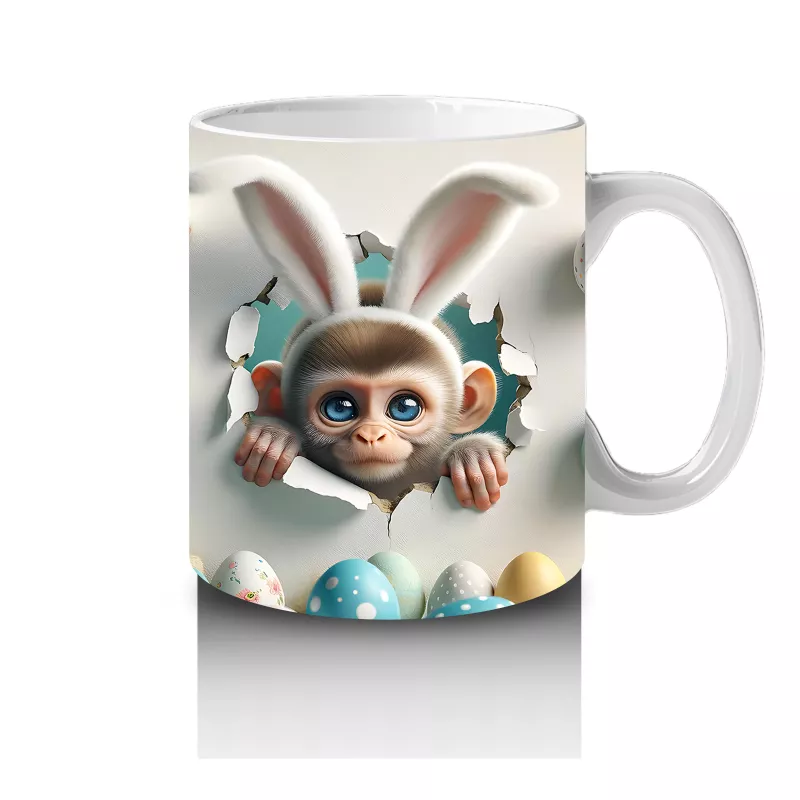 Paskalya Yumurtaları Arasında İkiz Maymun Karakterleri – Baskılı Kahve Kupası