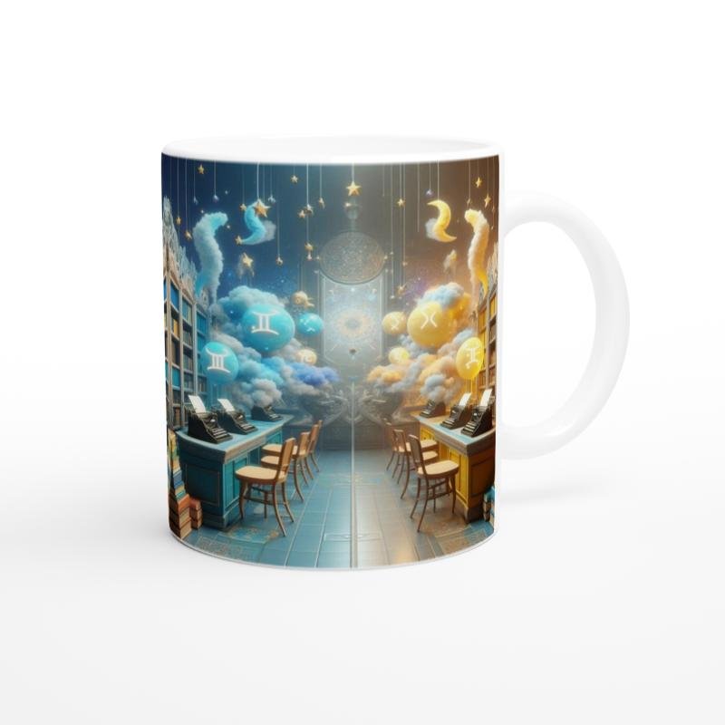 Zekâsı ve merakıyla öne çıkan İkizler burcuna özel bu Zodyak Kütüphanesi temalı kupa, fikirlerin özgürce dolaştığı kozmik raflarda sizi bekliyor. Her yudumda bir bilgi kıvılcımı!