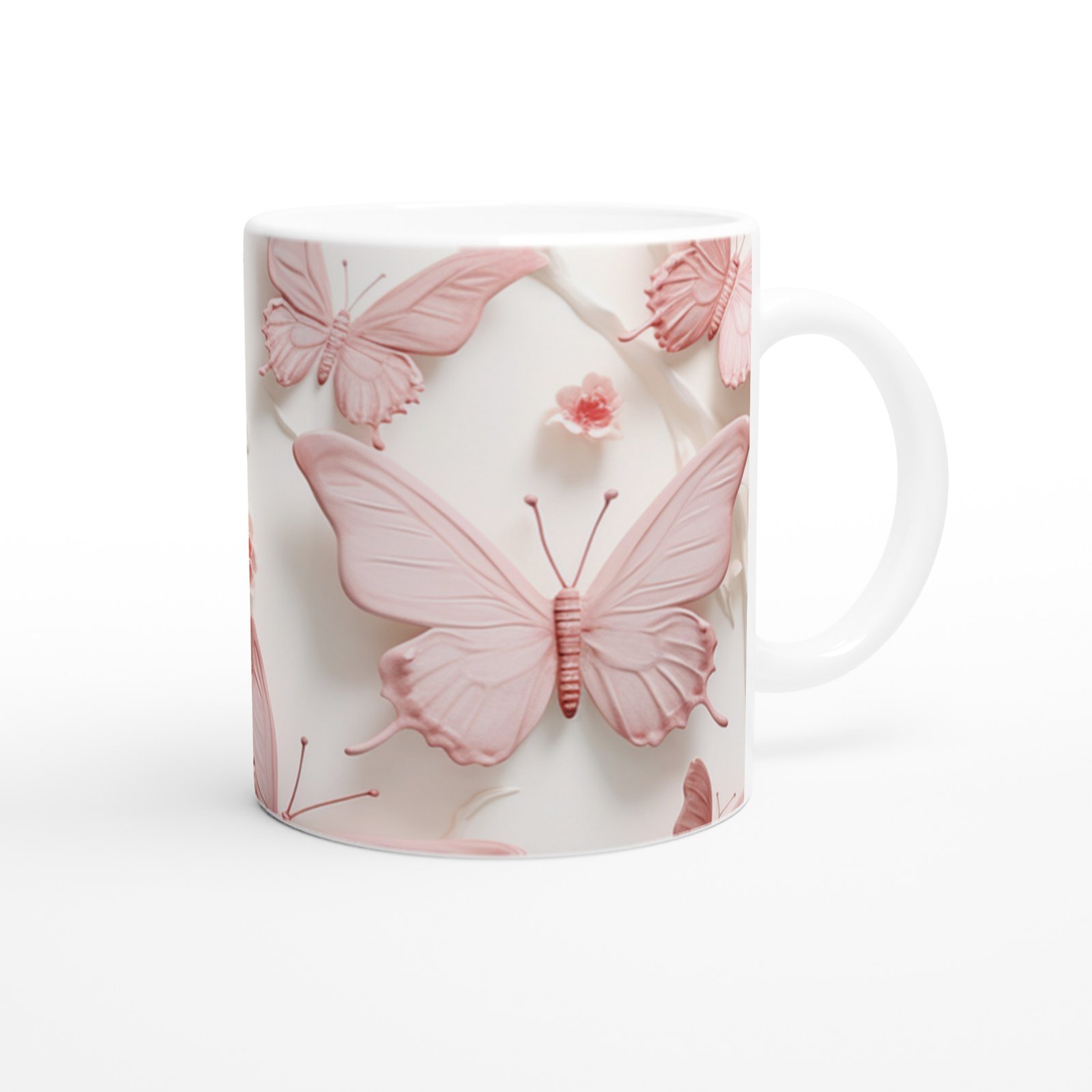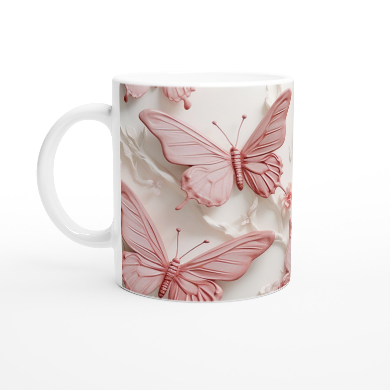 İnci Parlaklığında Pembe Kelebek Temalı Baskılı Kupa Bardak, pastel tonları ve yumuşak çizgileriyle göz yormayan zarif bir tasarım sunuyor. Her yudumda baharın dinginliğini hissetmek isteyenlere özel.