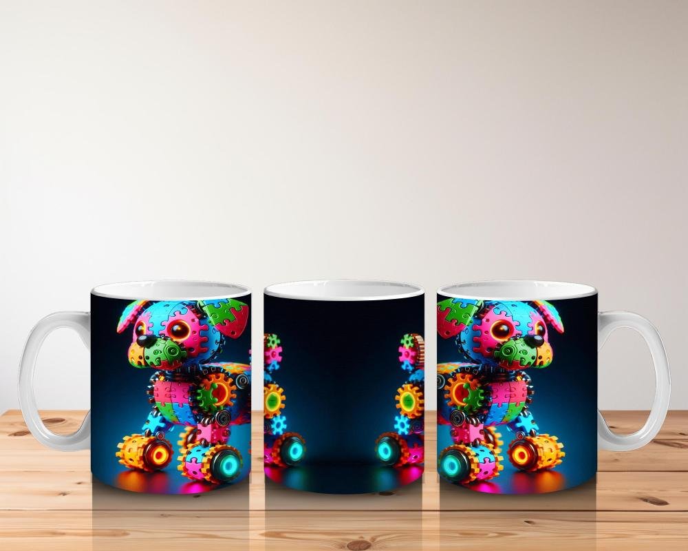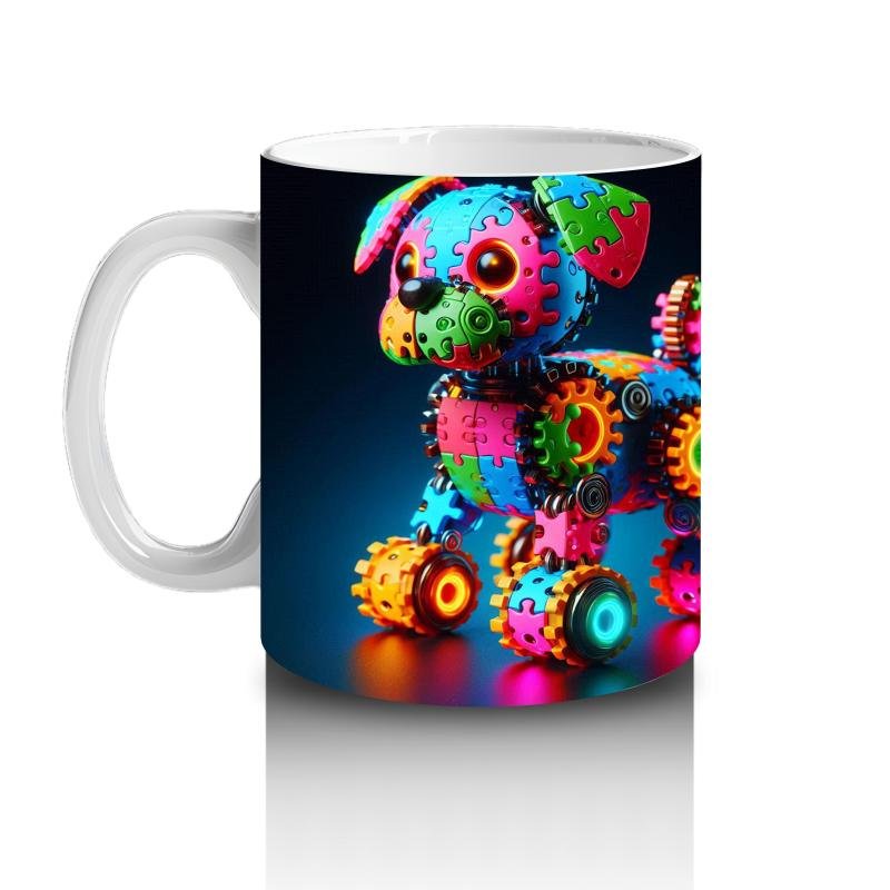 Çocuklara Sütü Sevdiren Işıltılı Dişli Robot Köpek Kupa Bardak