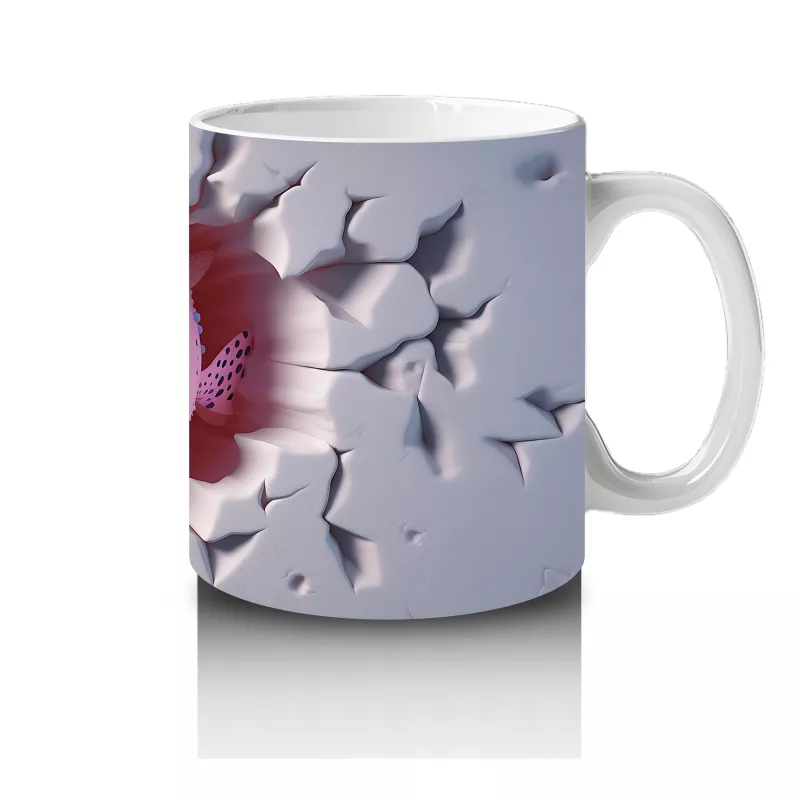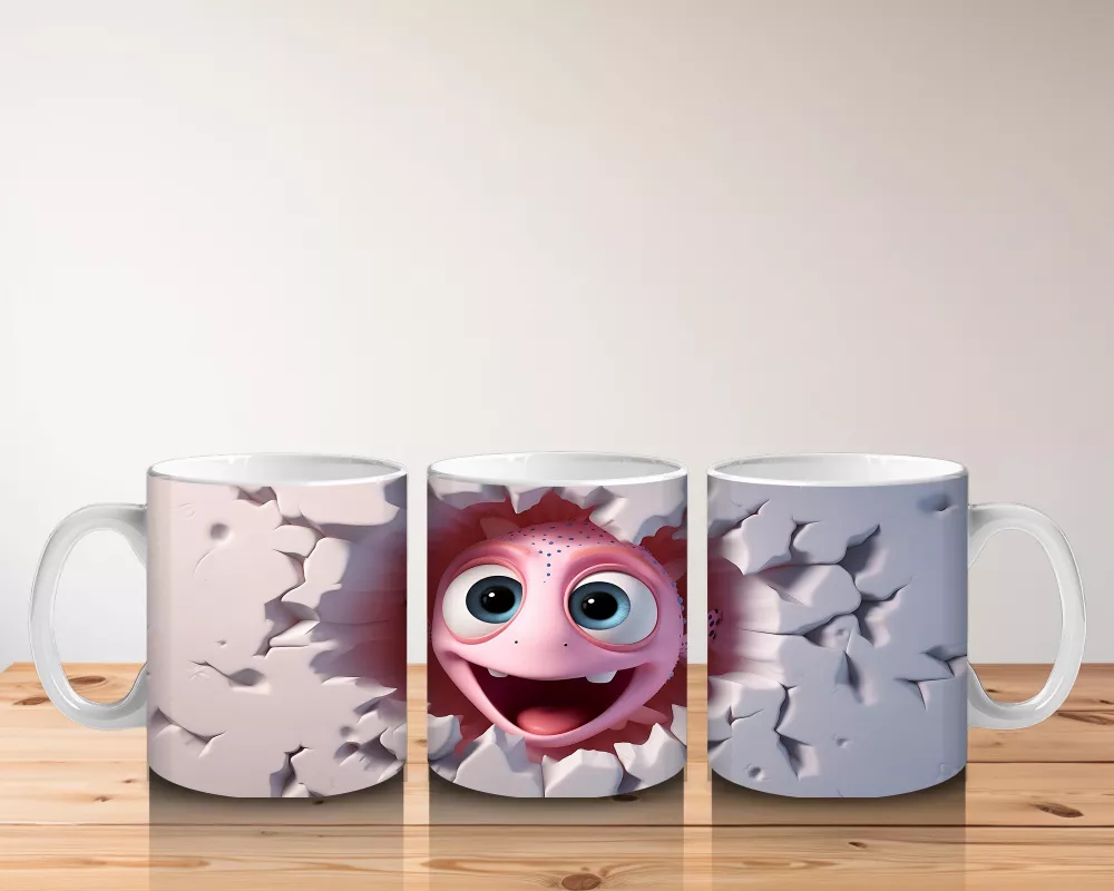 Kalp şeklindeki bir çatlağın içinden bakan sevimli pembe maskot, romantik ve neşeli bir tasarımı yansıtıyor. Aşk dolu mesajlar için mükemmel bir hediye kupası.