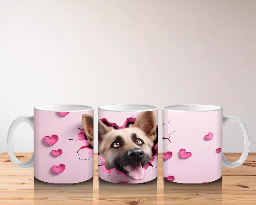 Kalplerle Çevrili Sevimli Alman Kurdu – Baskılı Kahve Kupası