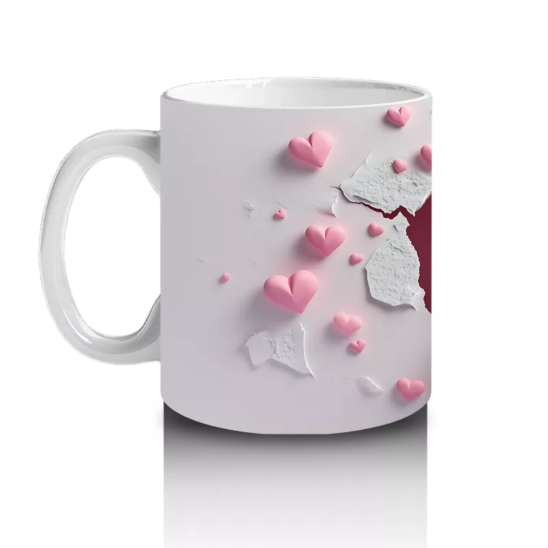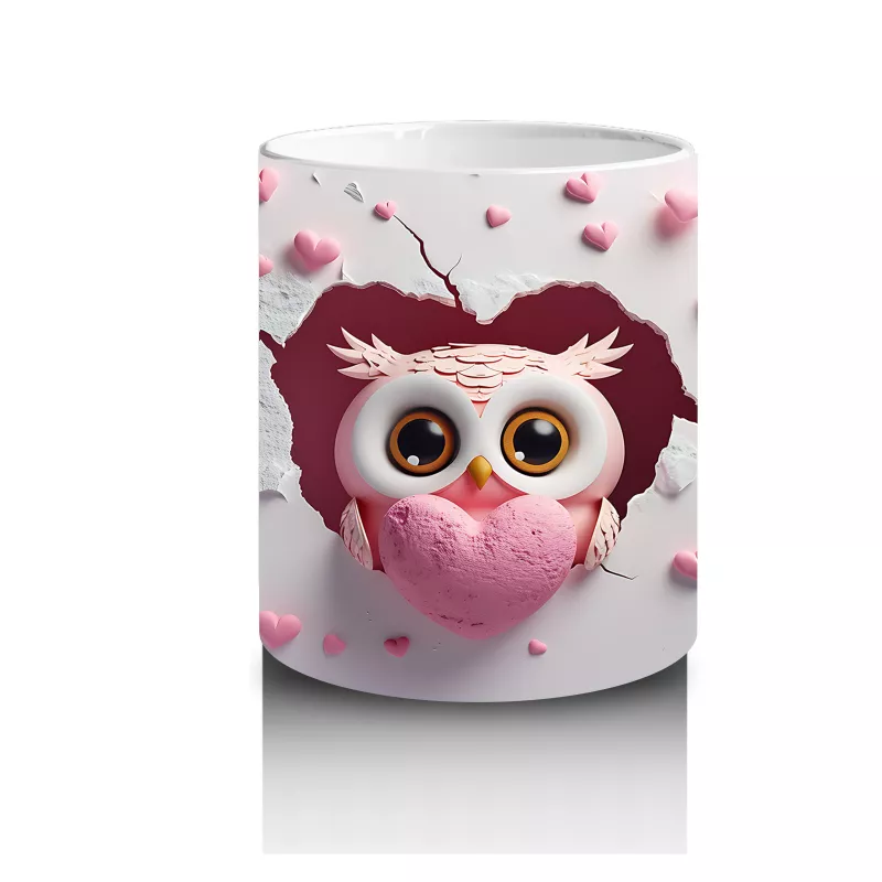 Pembe Kalp Yağmuru Altında Baykuş Maskotu – Baskılı Kahve Kupası