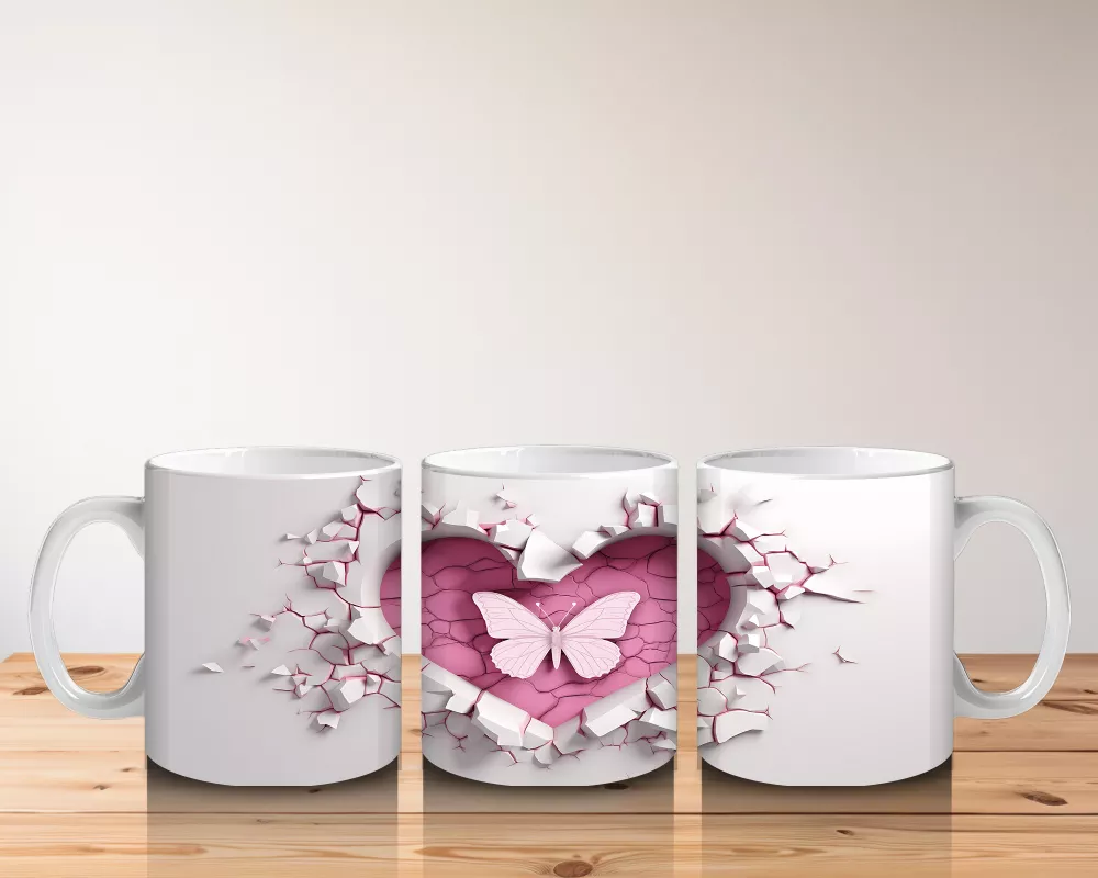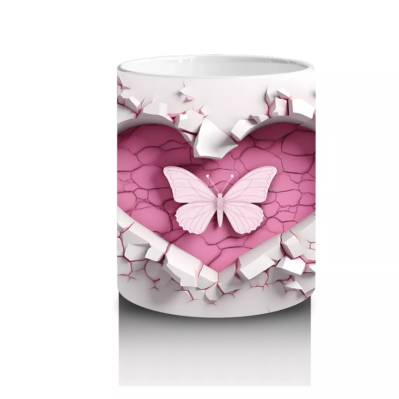 Beyaz çiçeklerin üzerinde yer alan kalp sembolü, saf sevgi ve zarafeti yansıtıyor. Romantik ve huzur dolu tasarımlar arayanlar için özel bir kupa.