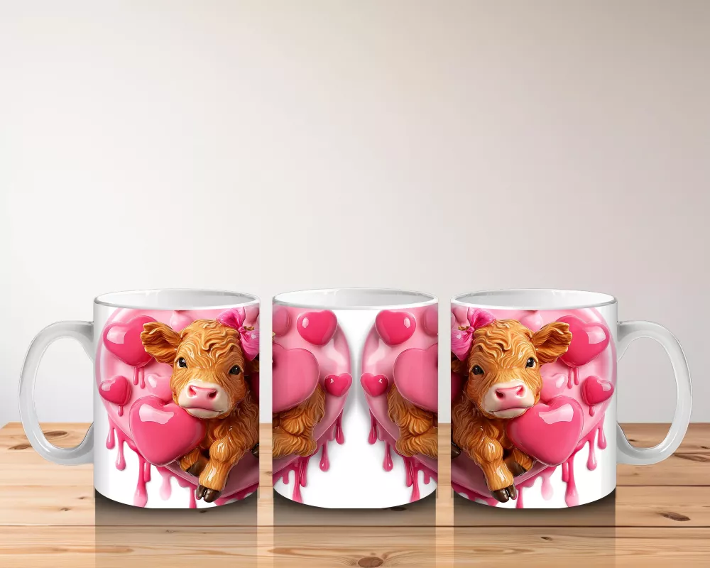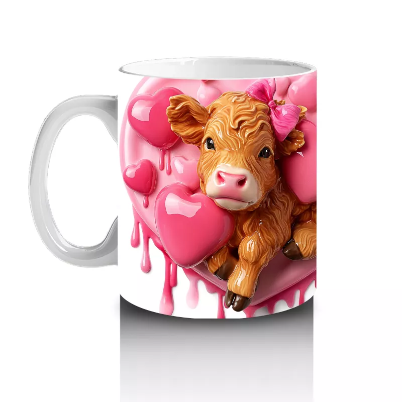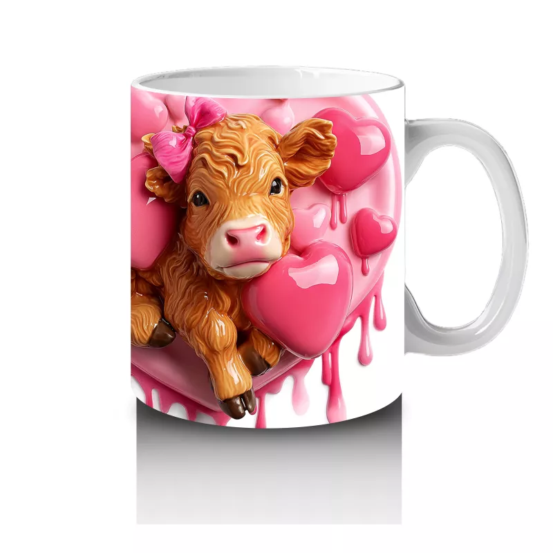 Sevimli inek figürleri, etraflarını saran kalpli balonlarla neşe ve sevgi dolu bir atmosfer yaratıyor. Eğlenceli tasarımları ve pozitif enerjiyi sevenler için mükemmel bir kupa alternatifi.