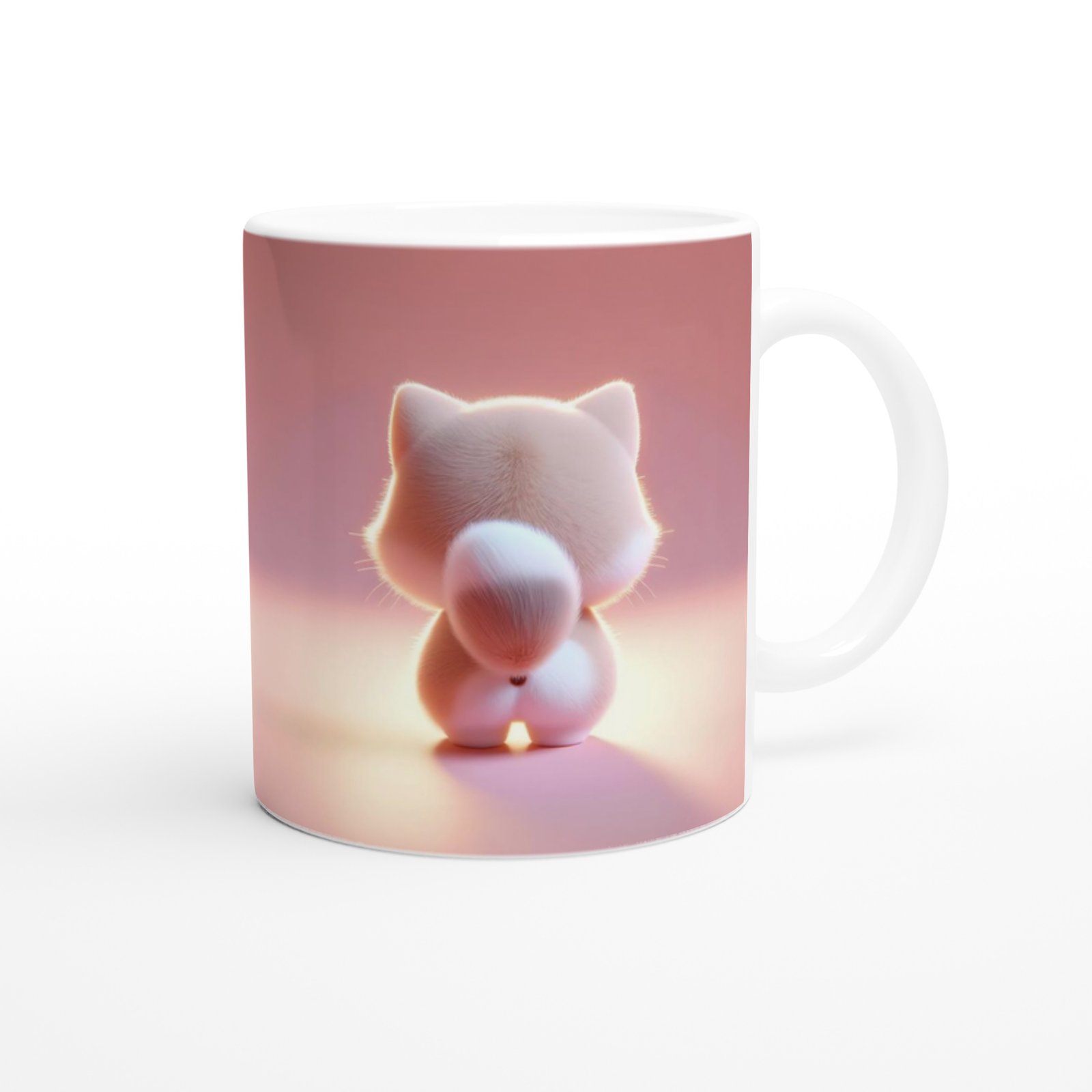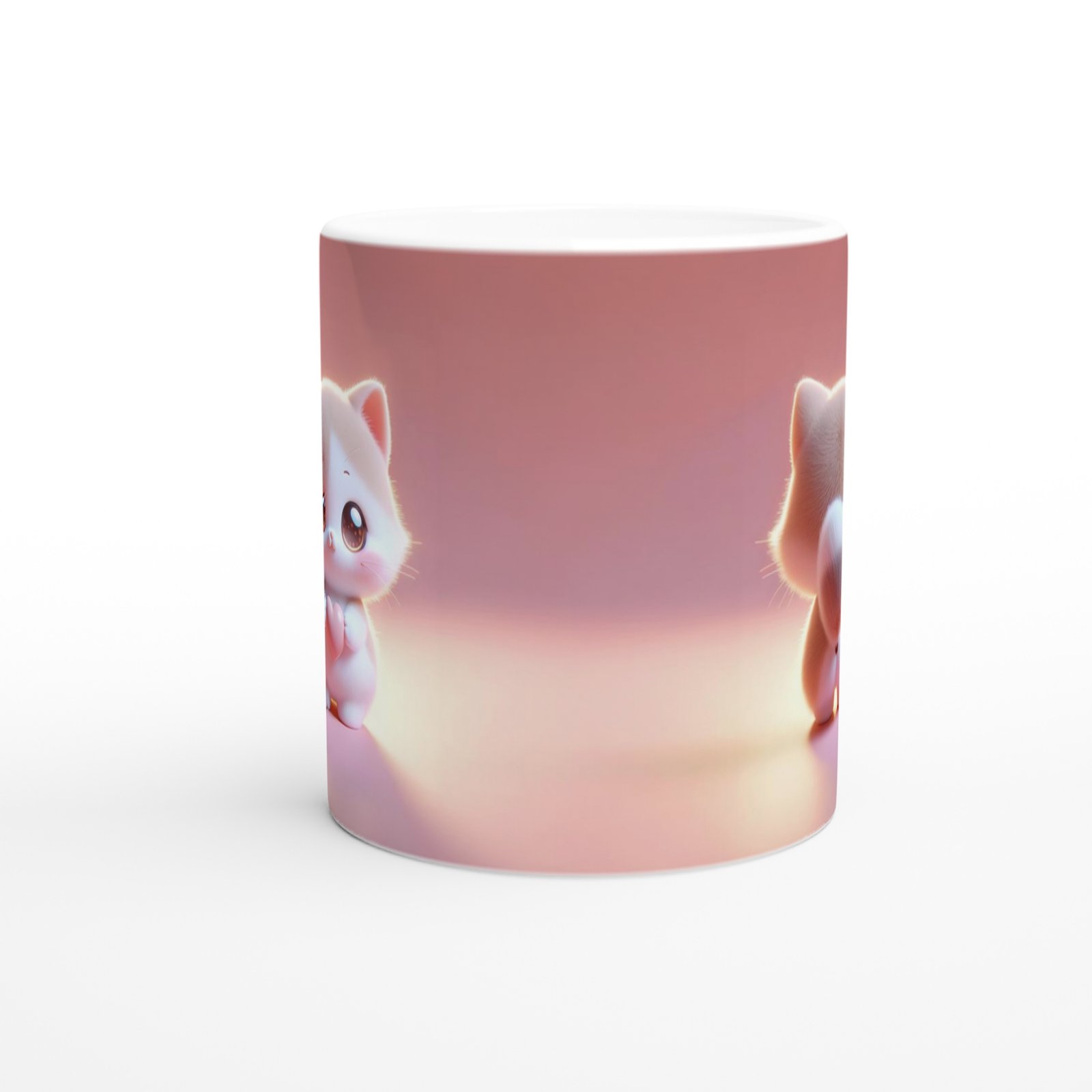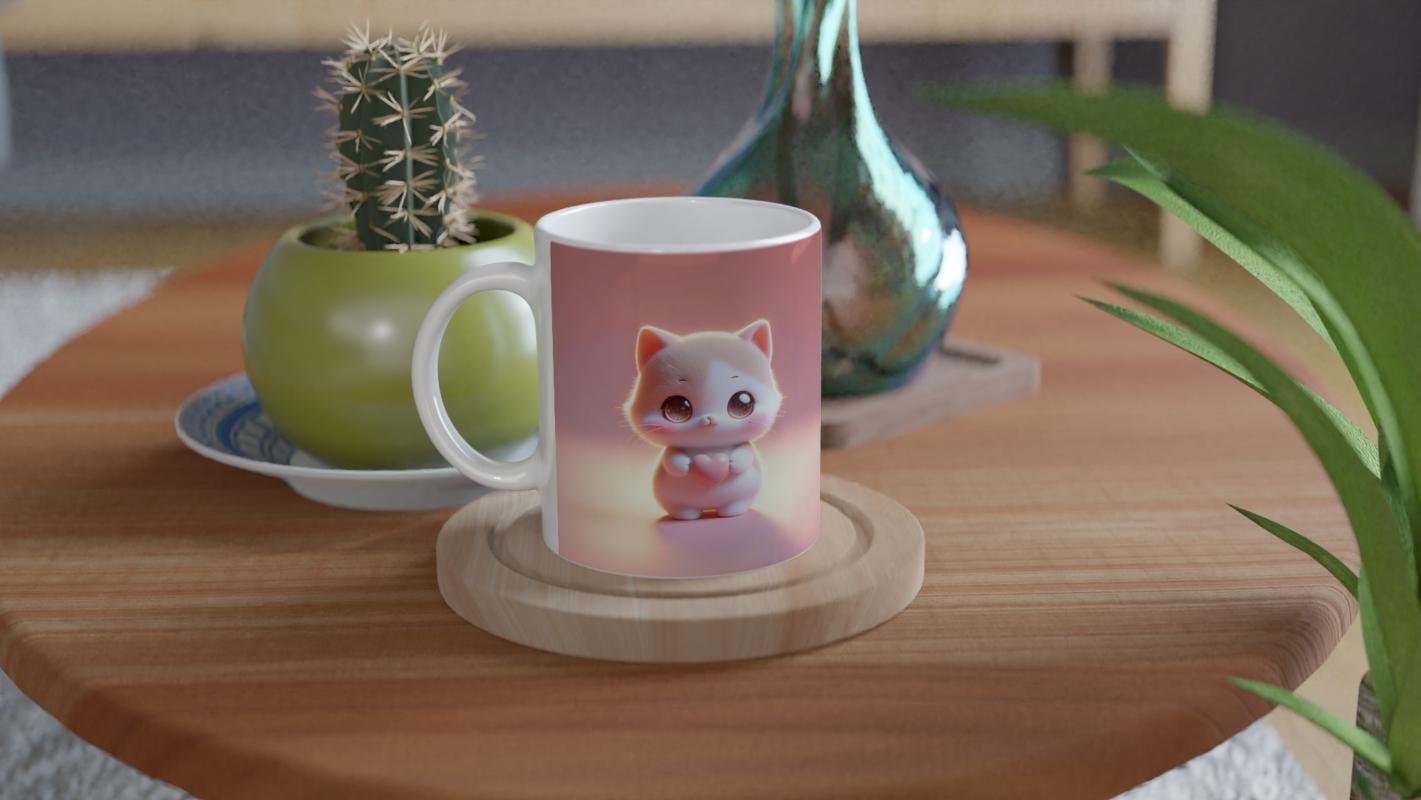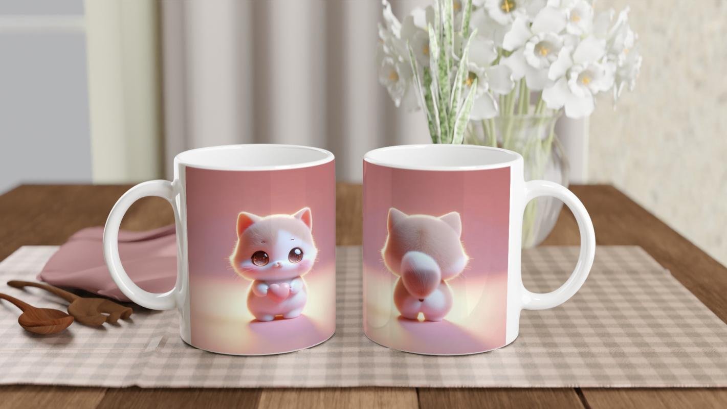 Önden ve arkadan görünüşüyle iki farklı perspektiften yansıtılan minik kedicik, pembe kalp detayıyla romantik ve neşeli bir atmosfer oluşturur. Hem çocuklara hem de kalpli tasarımları seven yetişkinlere hitap eden özel bir tasarımdır.