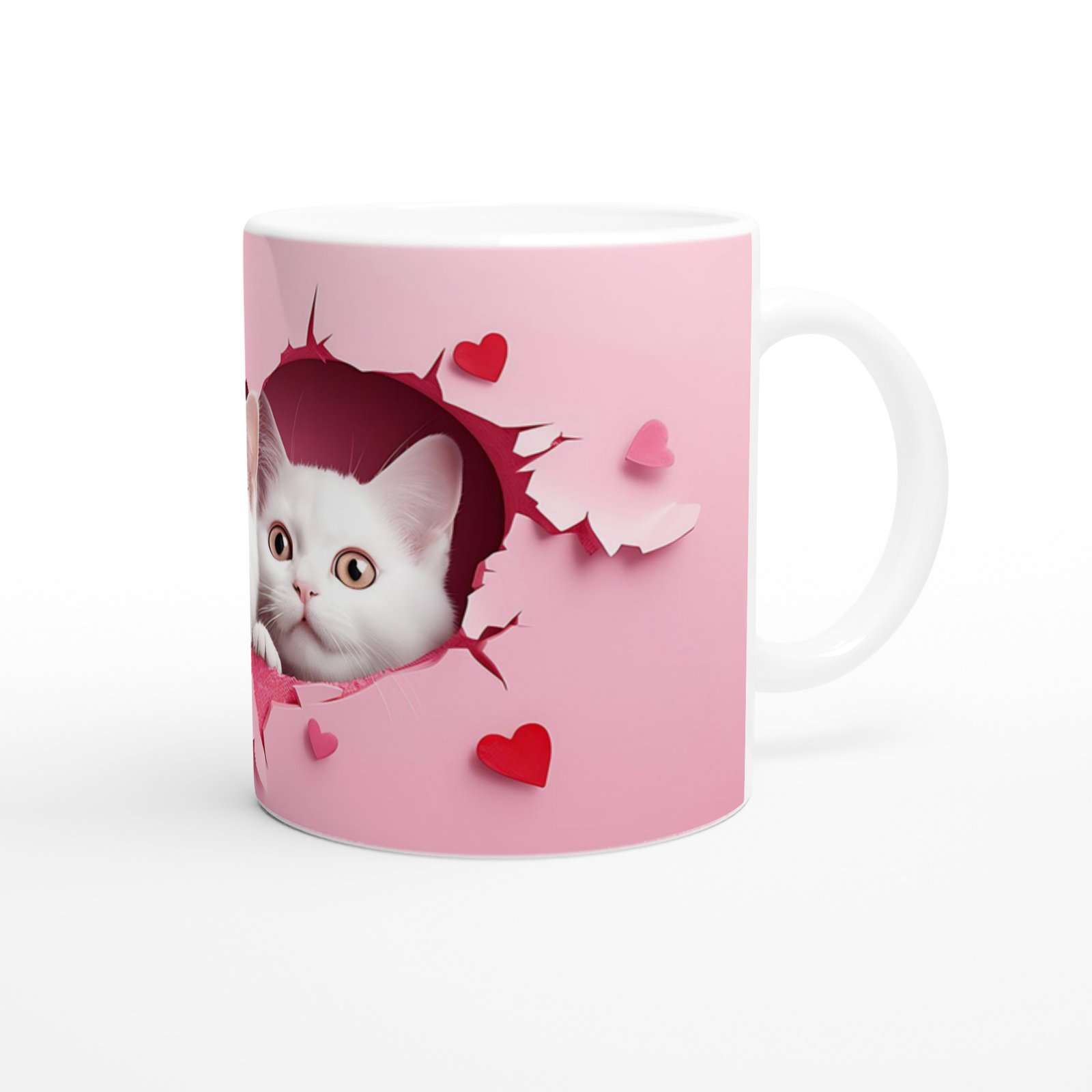 Pembe zemin üzerine kalp şeklindeki çatlak detayından bakan iki masum kedi figürü, hem eğlenceli hem de iç ısıtan bir tasarım sunuyor. Kedi severlere özel, duygu dolu bir hediye alternatifi.