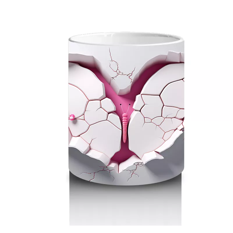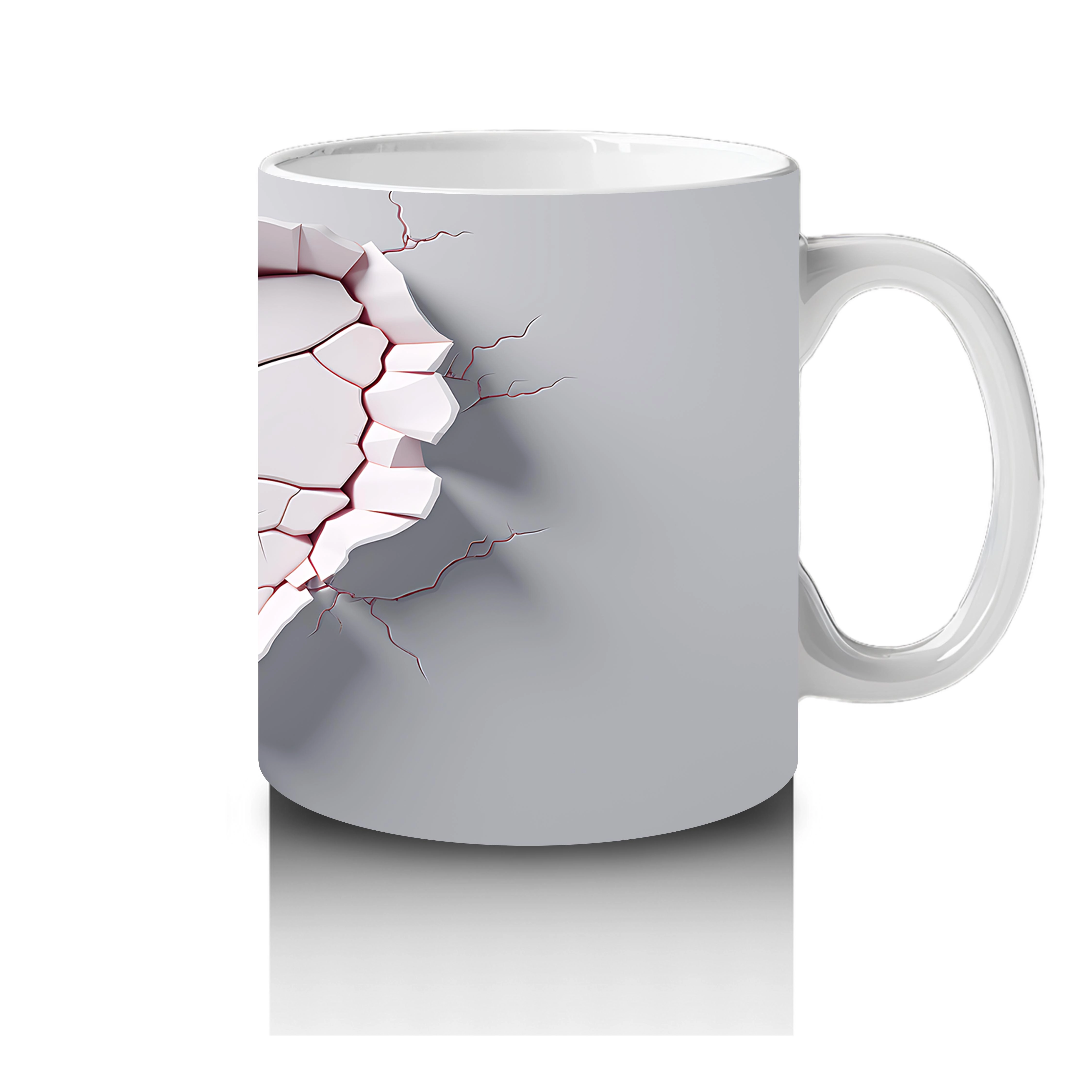 Kalpli Kırık Duvar Arasında Tavşan Figürü – Baskılı Kahve Kupası