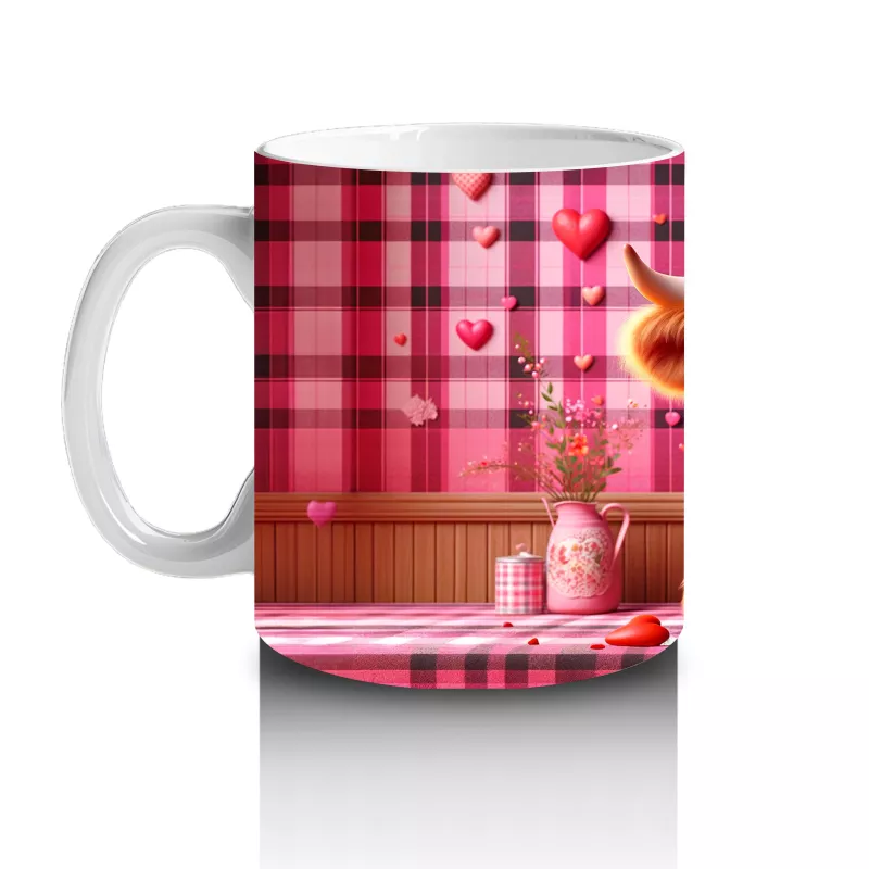 Kırmızı Çizgili Arka Planda Kalpli Kız – Baskılı Kupa