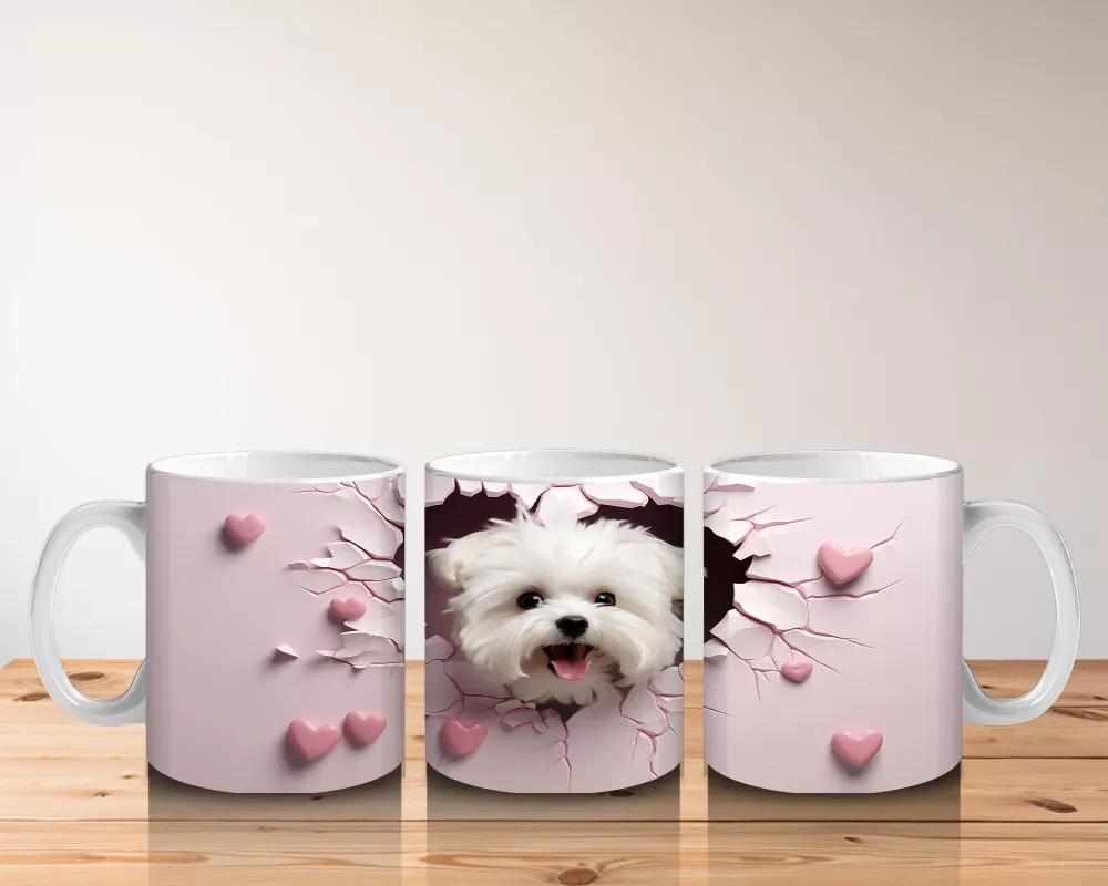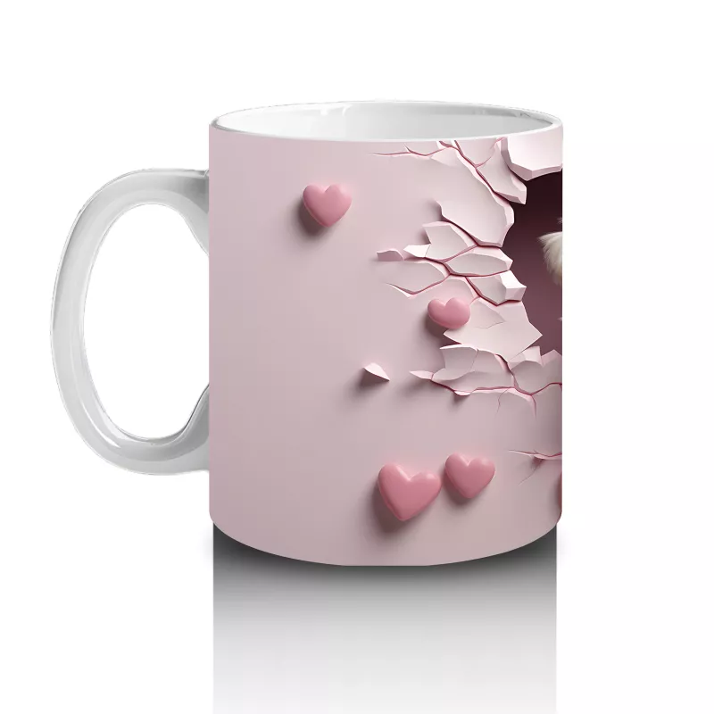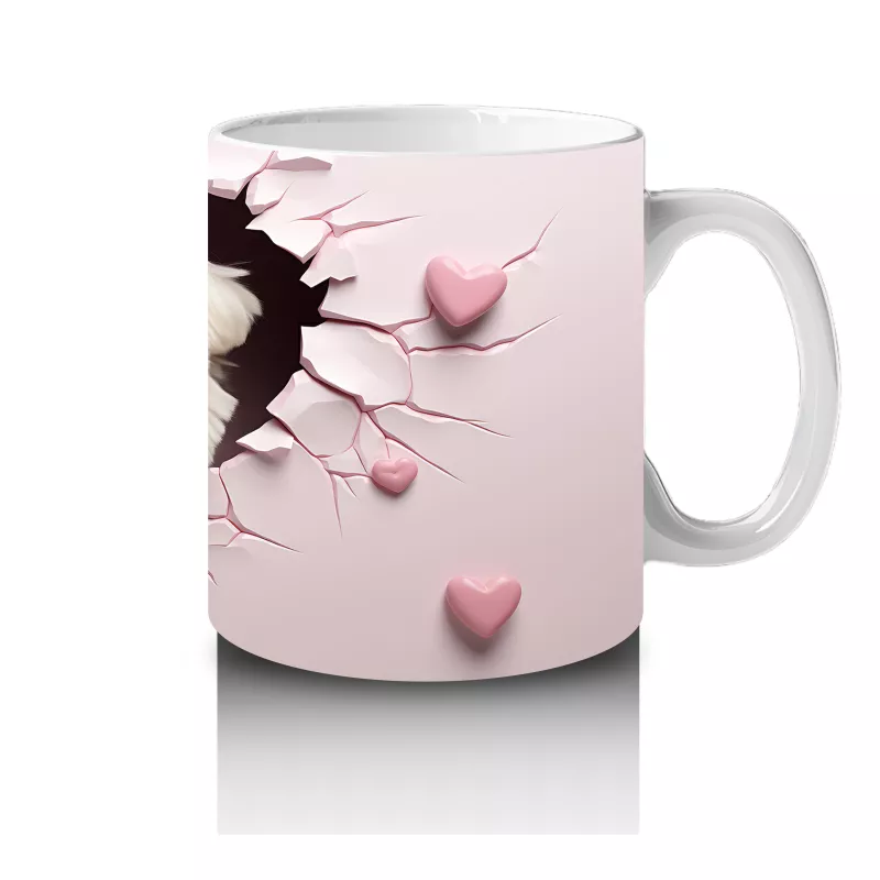 Kalpli arka plan önünde duran bu sevimli köpek, dostluğun ve sevginin sıcaklığını yansıtıyor. Her yaşa hitap eden, duygusal ve neşeli bir hediye alternatifi.