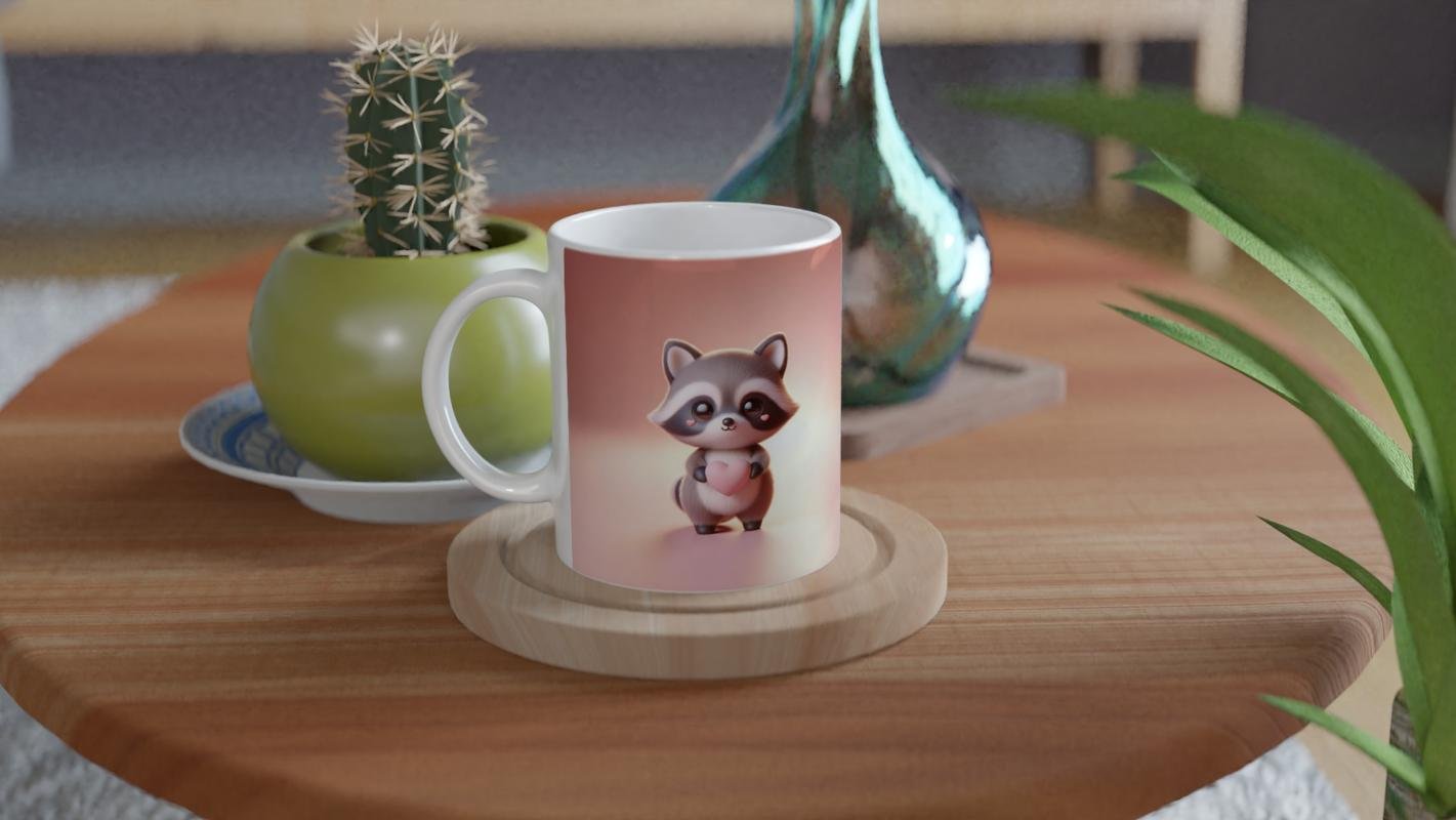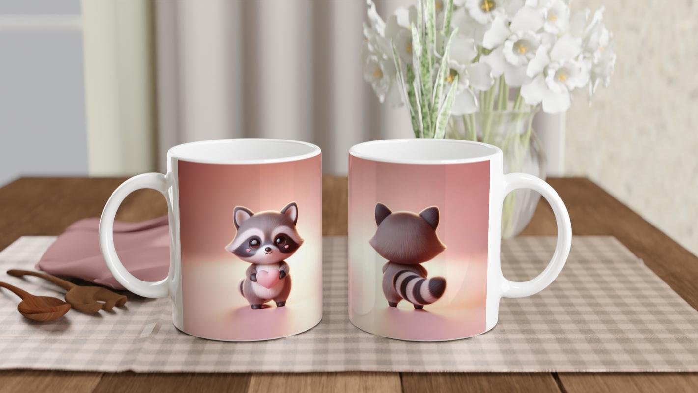 Kalpli Yanaklı Sevimli Rakun Temalı Baskılı Kupa Bardak, elinde tuttuğu kalp figürüyle iç ısıtan bir mesaj verirken, yumuşak tüy dokusu ve arkadan da devam eden detaylarıyla tam bir koleksiyon parçası. Özellikle sevgi temalı hediye arayanlar için ideal bir seçenek.