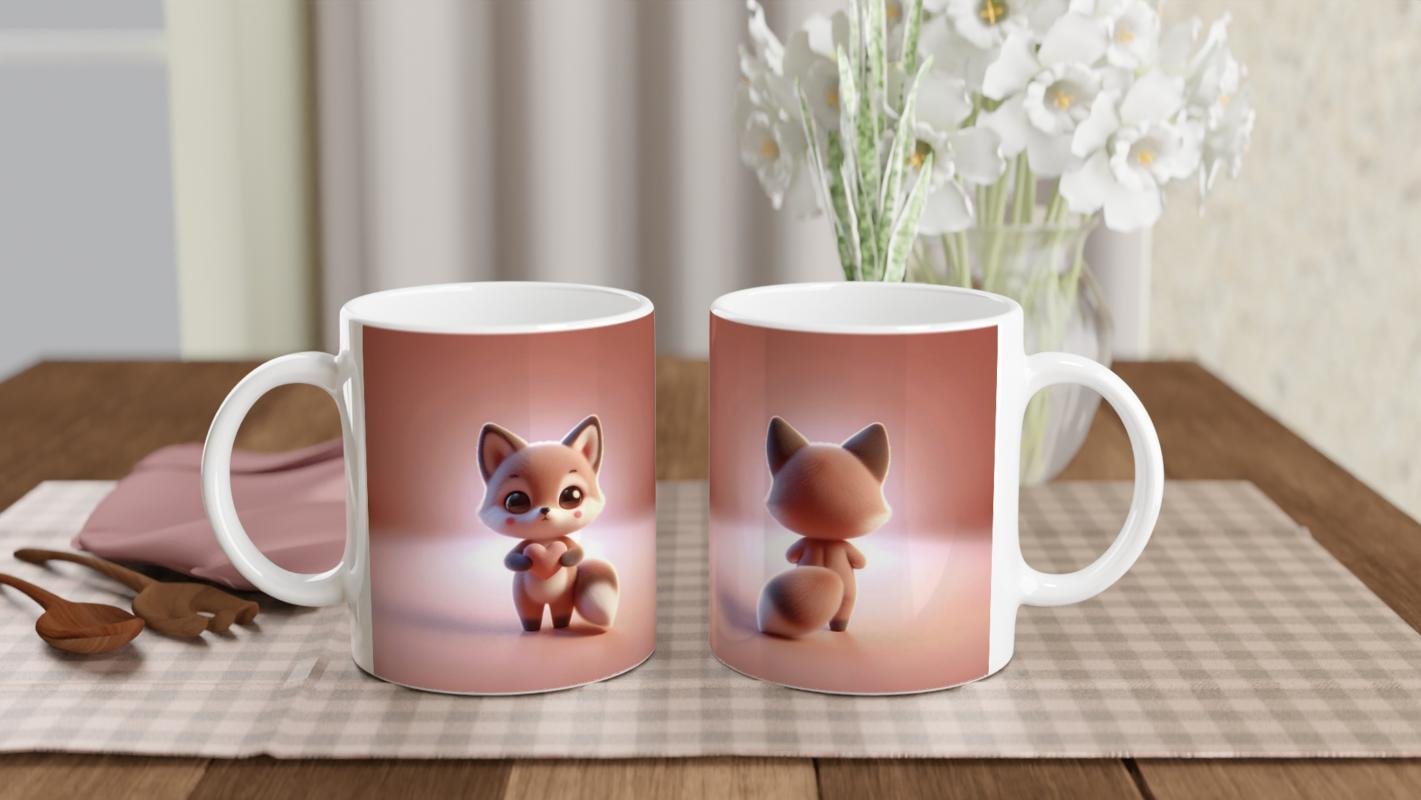 Tilki baskılı kupa, büyük gözleri ve kalp tutan minicik patileriyle sıcaklığı ve tatlılığı bir araya getiriyor.