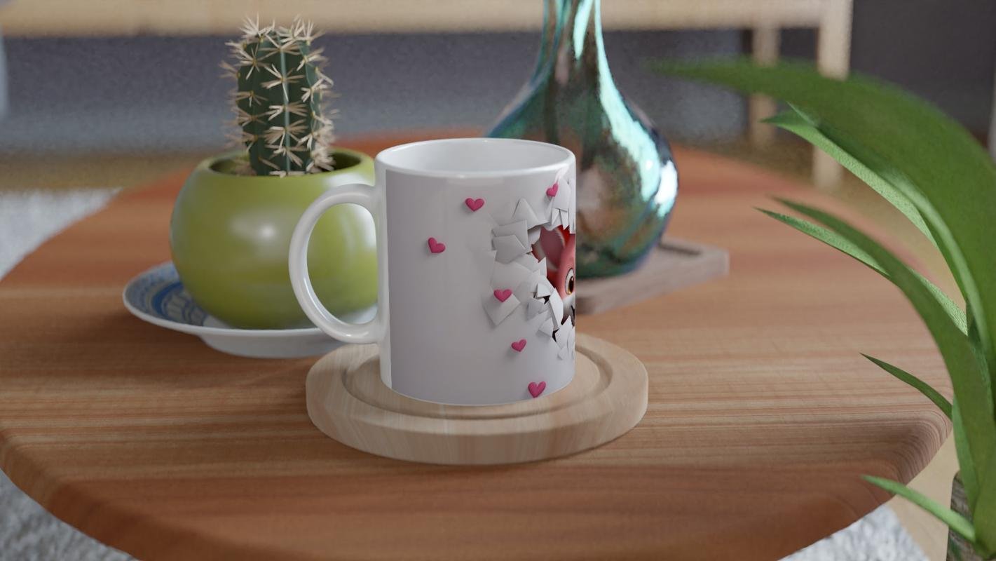 Kalp şeklinde zarf yığınları arasında beliren bu tatlı tilki figürü, her yudumda yüzlerde gülümseme bırakıyor. Hem romantik hem eğlenceli bir hava taşıyan bu kupa, özellikle hediye alternatifi arayanlar için harika bir seçenek.