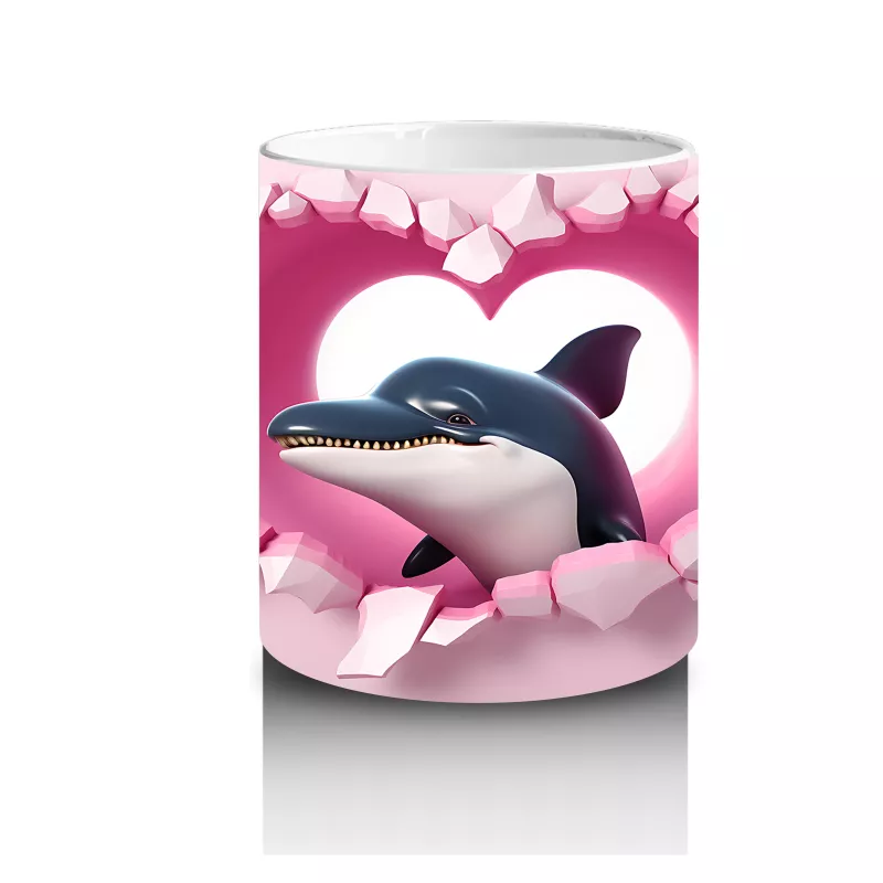 Kalplerle süslenmiş fon önünde zarif bir yunus figürü, dostluğu ve pozitif enerjiyi yansıtıyor. Deniz ve sevgi temalı özel tasarımıyla harika bir hediye seçeneği.