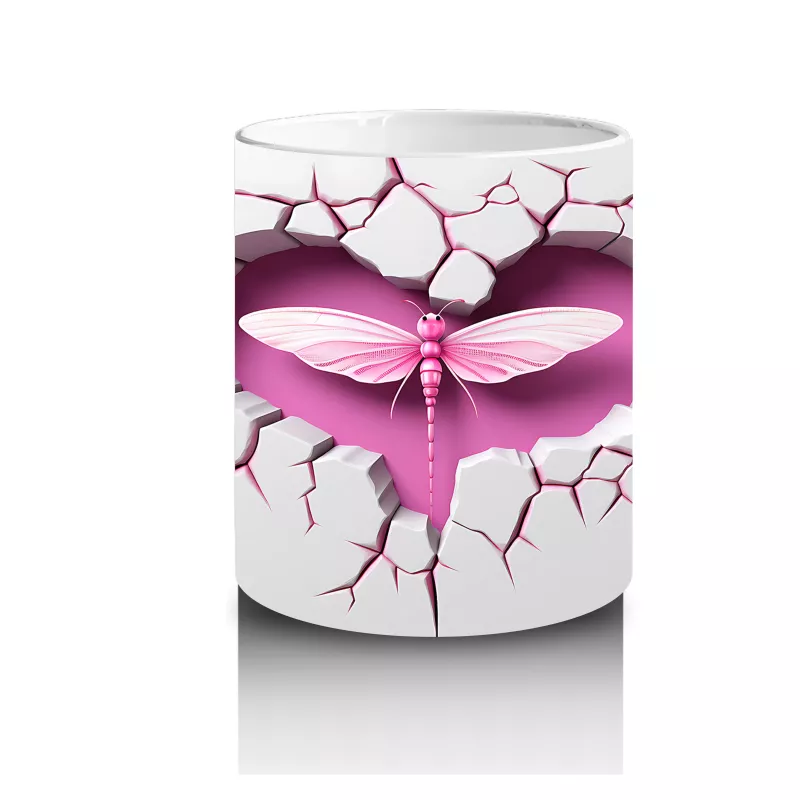 Kalp Şeklindeki Çatlakta Pembe Yusufçuk – Baskılı Kahve Kupası