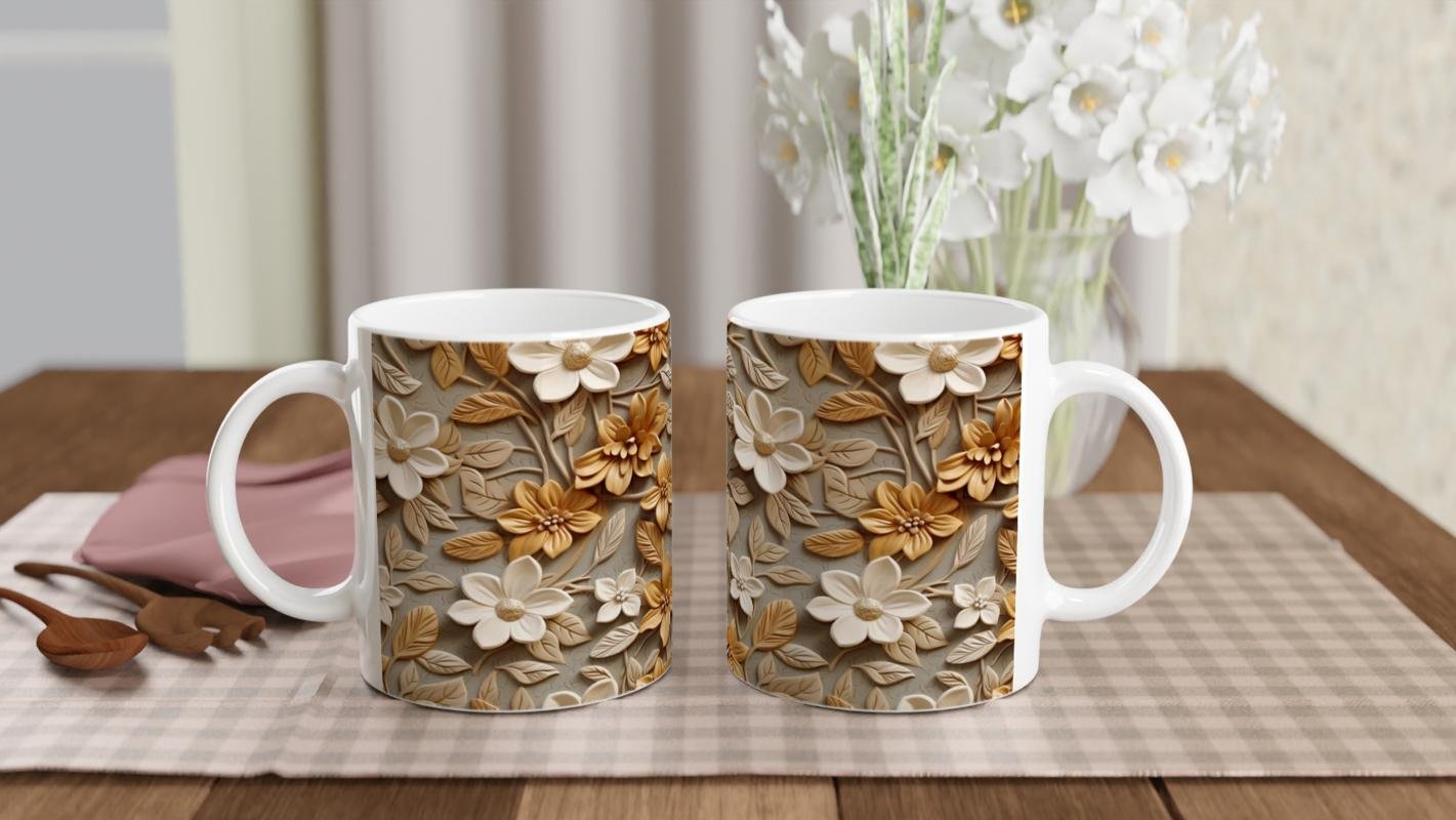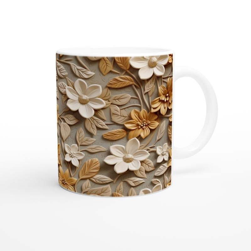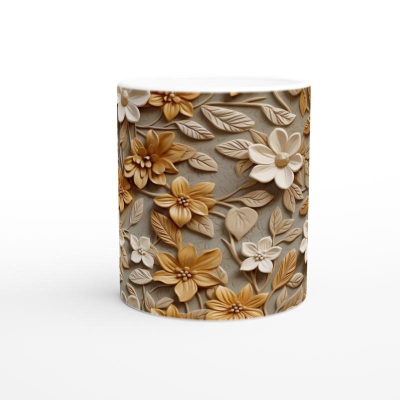 Kahve saatlerine zarafet ve doğadan esintiler taşıyan bu rölyef çiçek desenli kupa bardak, estetik görünümüyle içecek keyfinizi tamamlar.