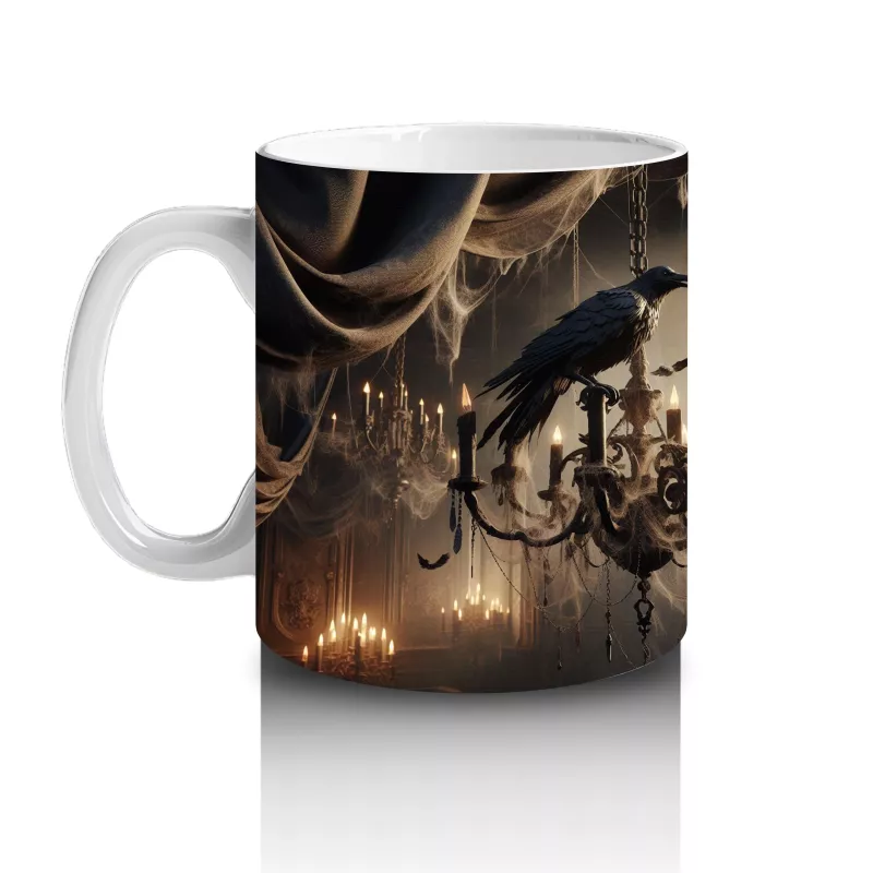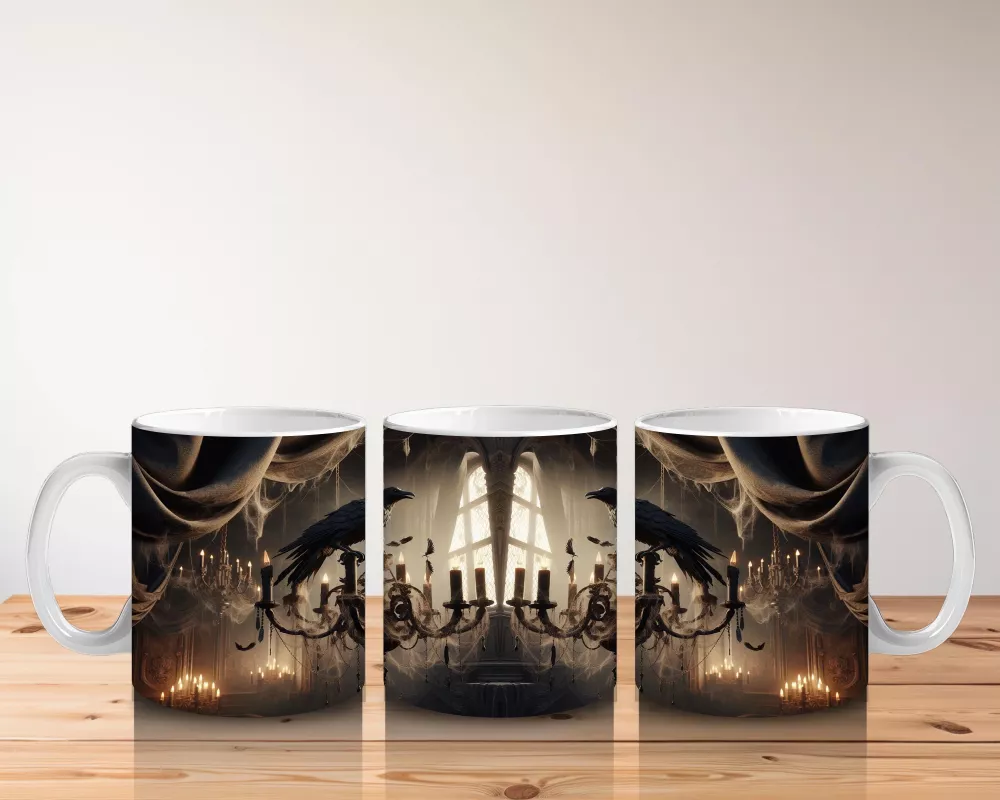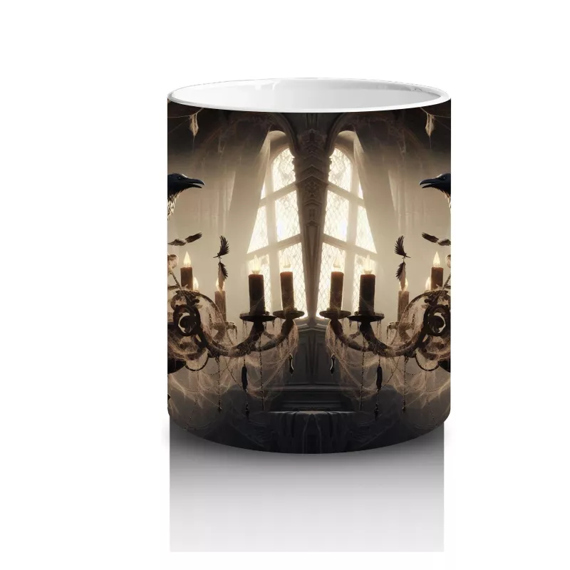 Karanlık gotik şapel içinde mumlar ve kafataslarıyla tasarlanan bu kupa bardak, Cadılar Bayramı dekorunuza mistik ve etkileyici bir atmosfer ekler.