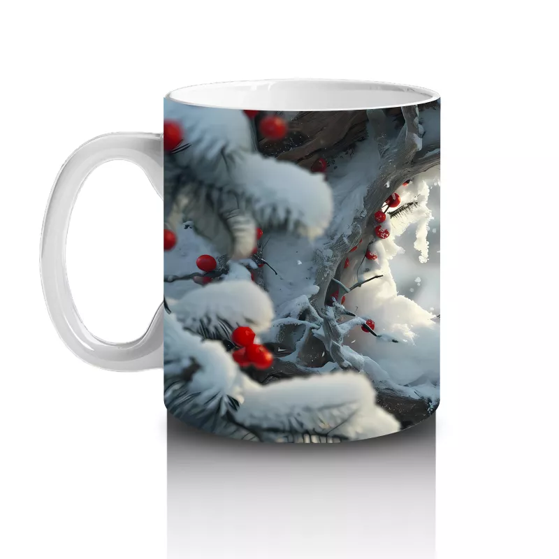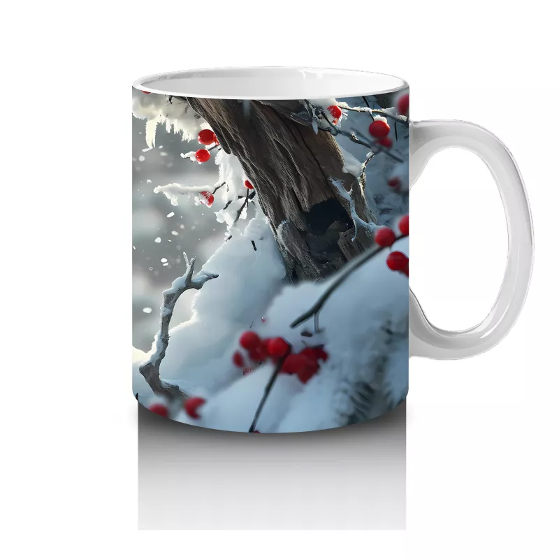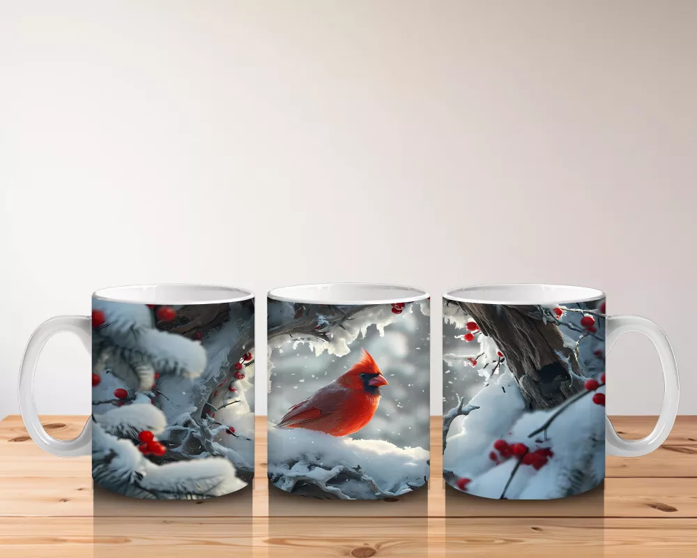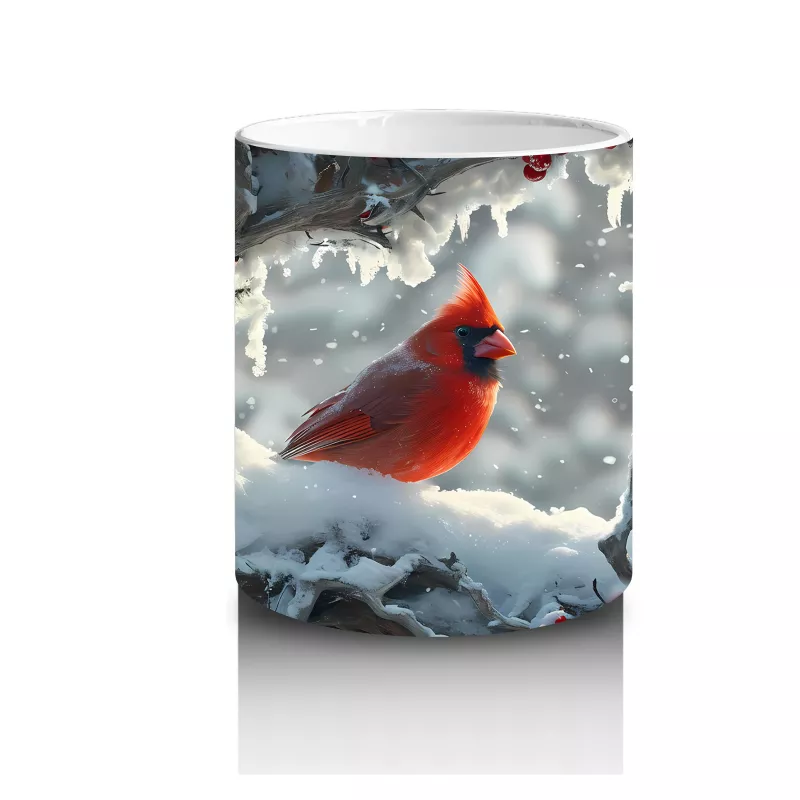 Karlı Arka Planda Aşk Temalı Kardinal Kuşları – Baskılı Kahve Kupası