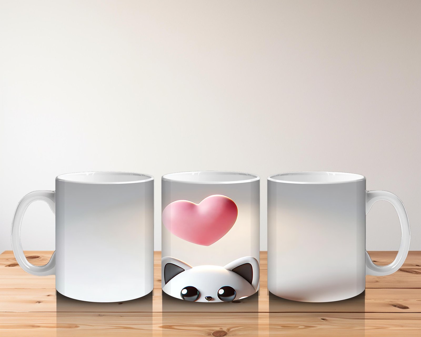 Çocuklara Sütdiren Kalp Başlı Kedi Arkadaşı Kupa Bardak