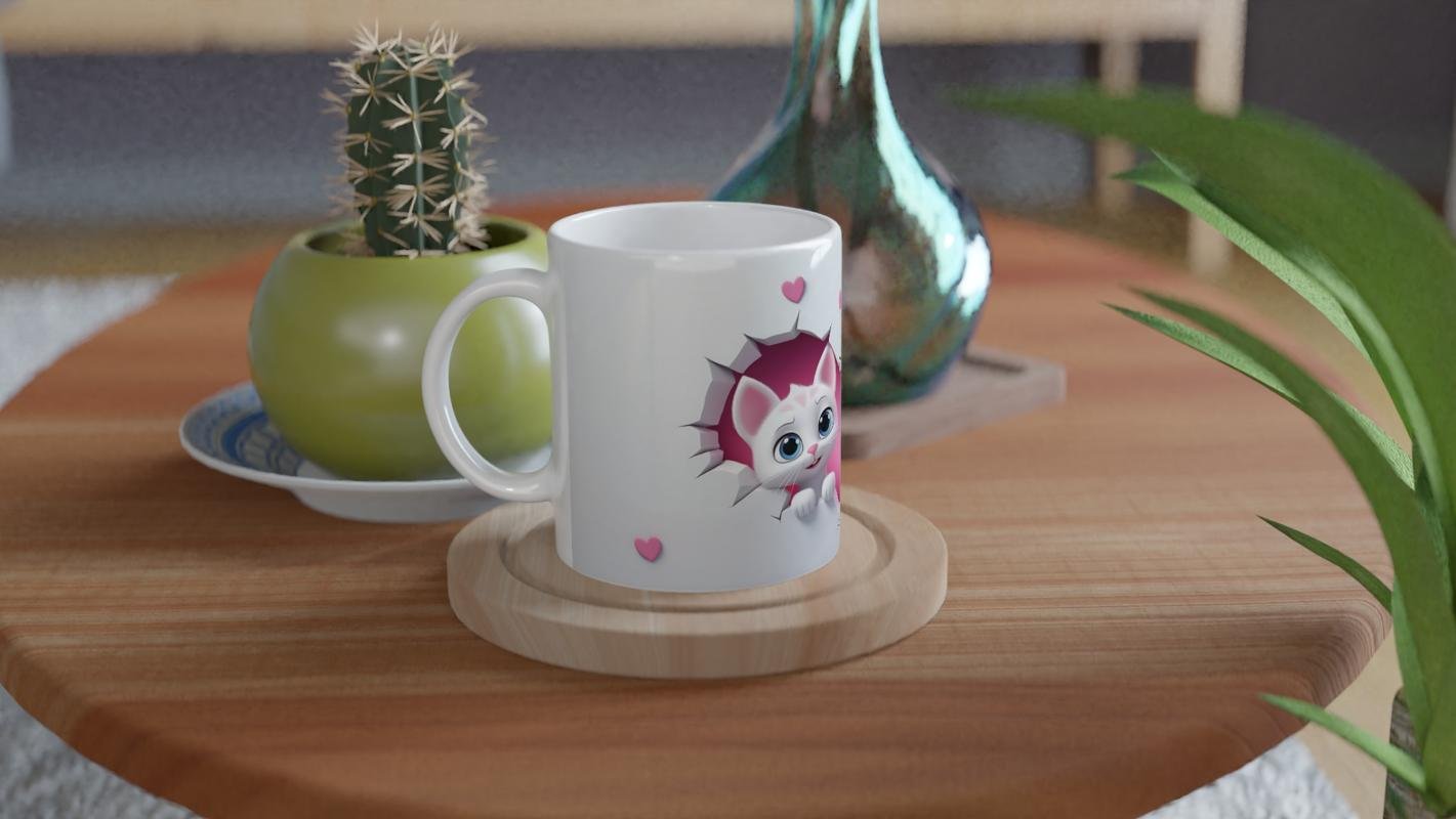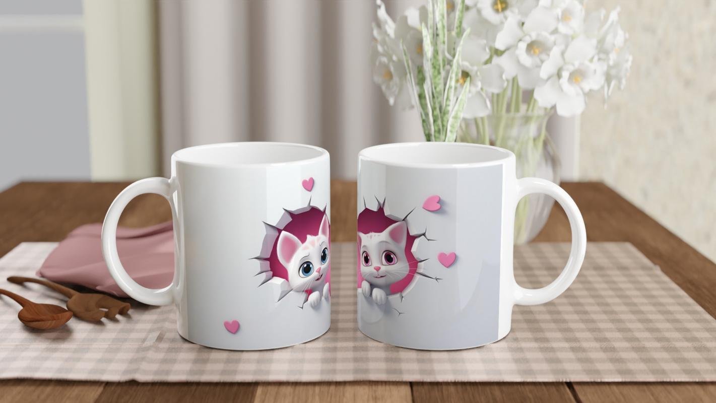 Beyaz duvarda açılmış kalp şeklindeki çatlağın içinden bakan iki minik kedi, sevgi dolu bir atmosfer sunuyor. Sevdiklerinize hediye edebileceğiniz romantik ve eğlenceli bir tasarım.