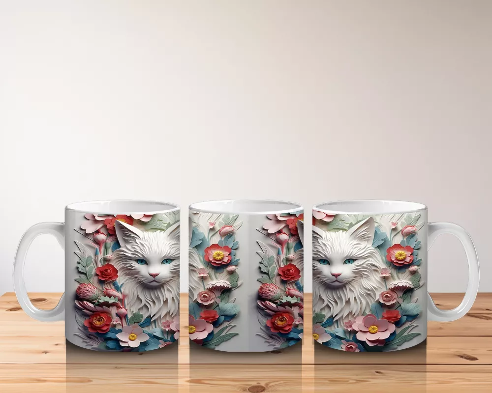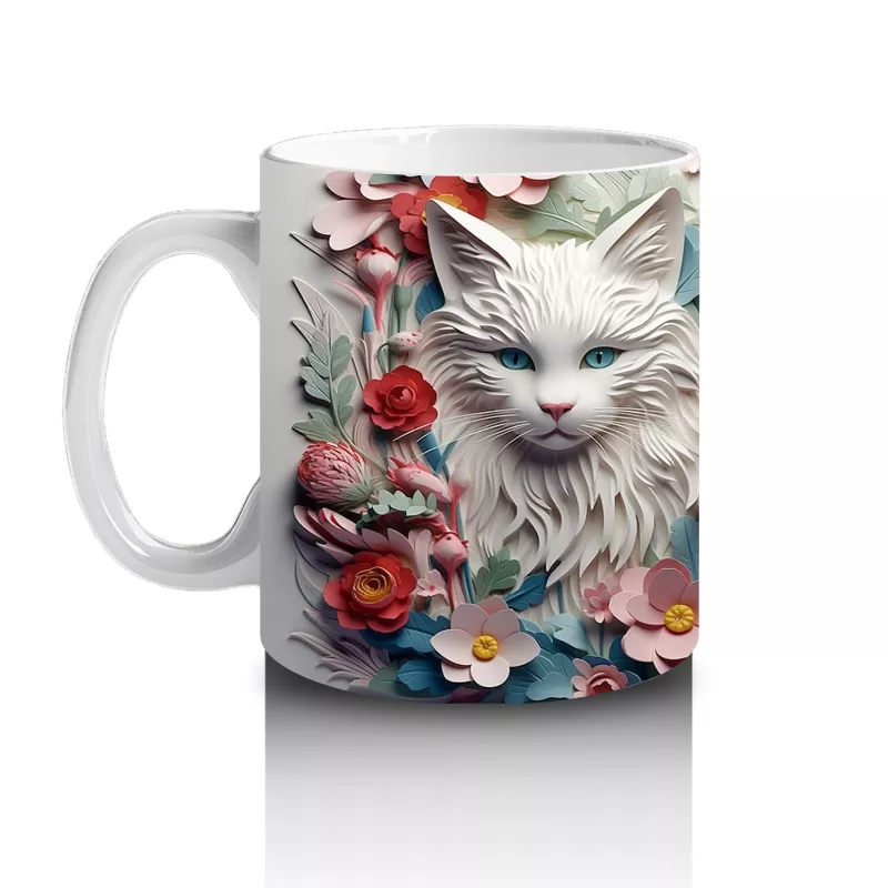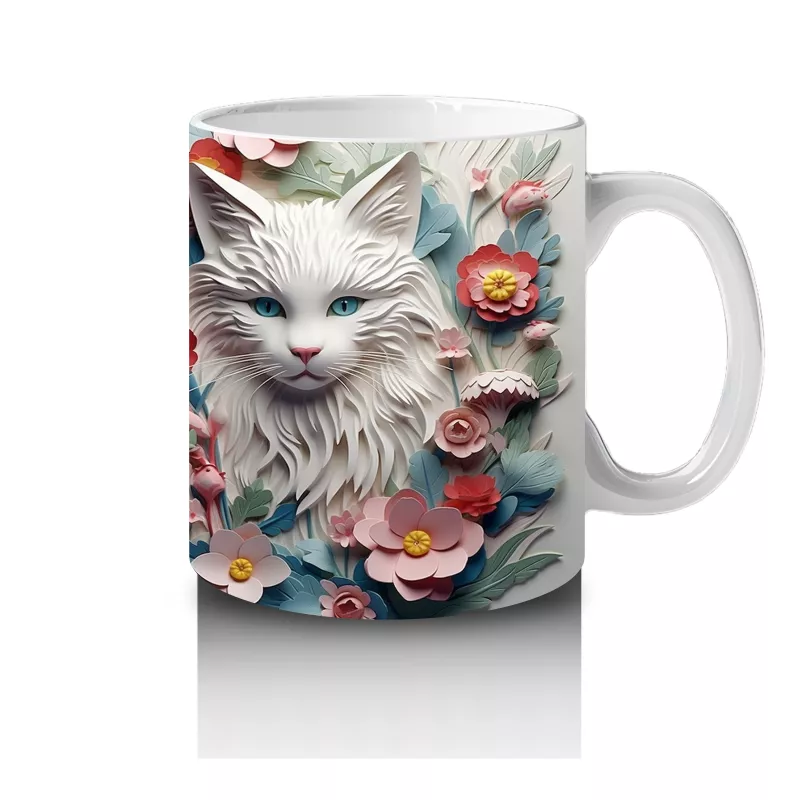 Renkli çiçekler ve zarif yapraklarla çevrelenmiş iki sevimli kedi figürü, doğallığın ve dostluğun zarif bir yansıması. Hayvanseverler için romantik ve içten bir kupa alternatifi.