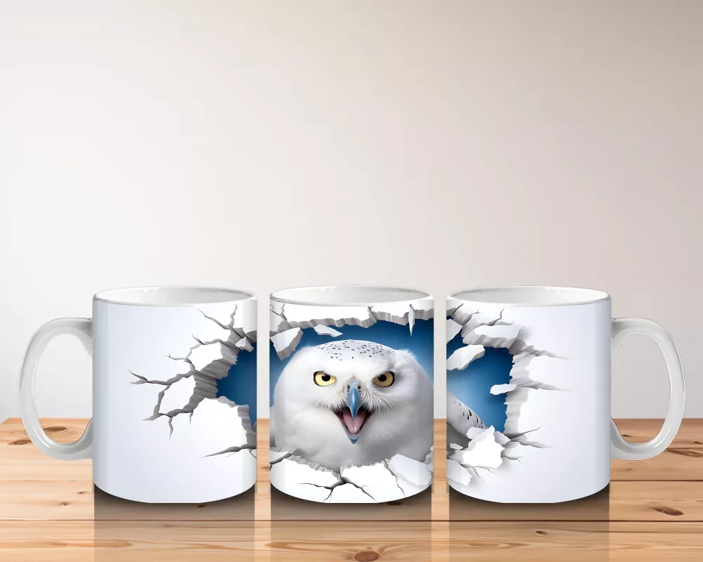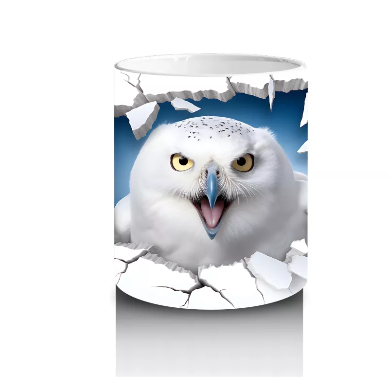 Gecenin bilgeliği ve gizemi kupanızda! 🦉 Kırık duvar detayları arasından sizi izleyen beyaz baykuşla tarzınızı yansıtın. Sıra dışı hediye seçimi!