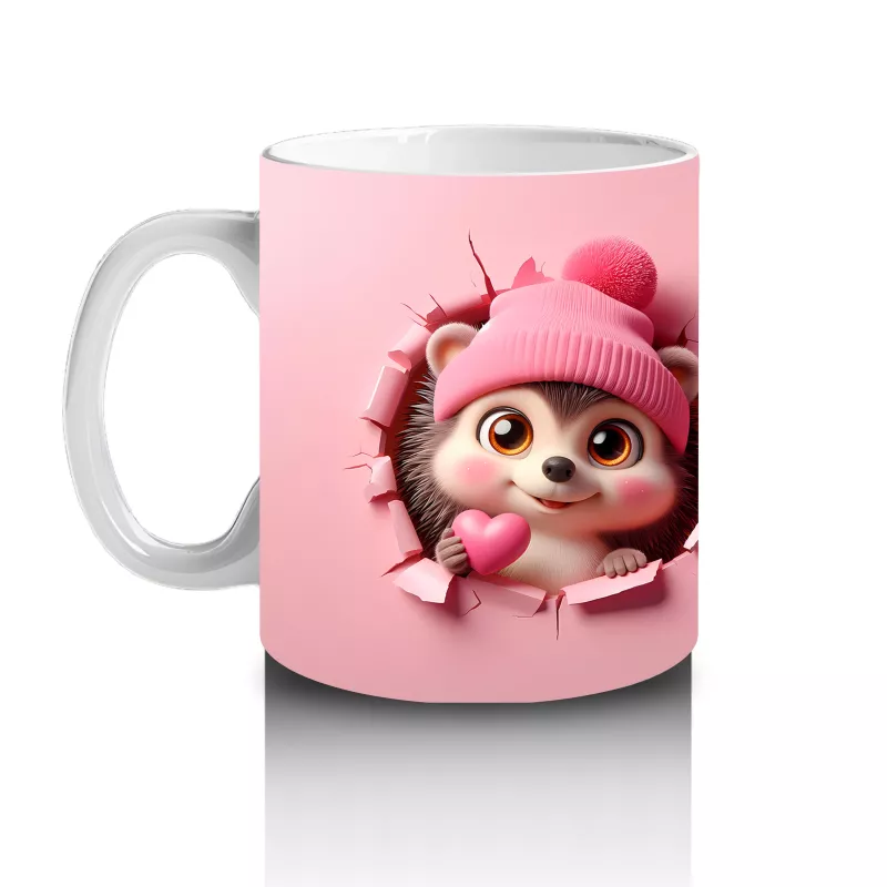 Mutlu İfade ile Bakan Tatlı Kirpi Kız Maskot – Baskılı Kahve Kupası