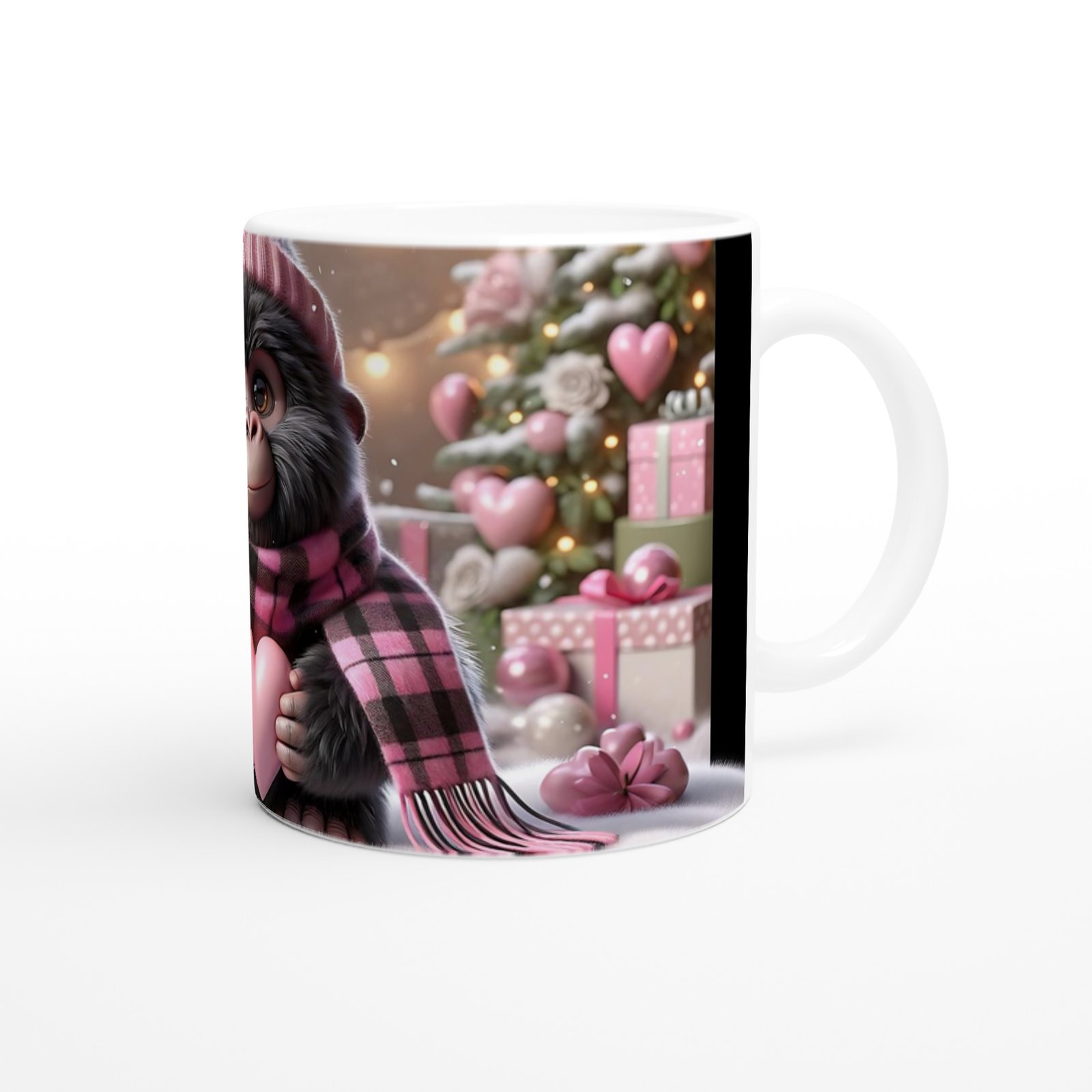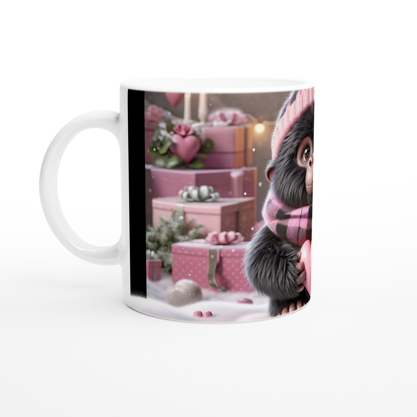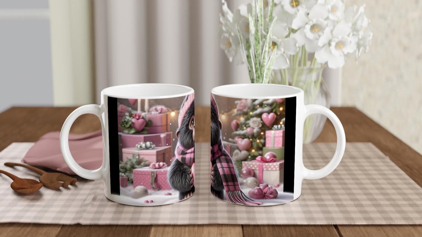 Sevgi Dolu Bebek Goril Temalı Kış Konseptli Baskılı Kupa Bardak, pembe hediye kutuları, kalp süslemeleri ve kar detaylarıyla özenle hazırlanmış bir tasarım sunuyor. Sevdiklerinize sıcacık bir sürpriz yapmak için mükemmel bir hediye alternatifi.