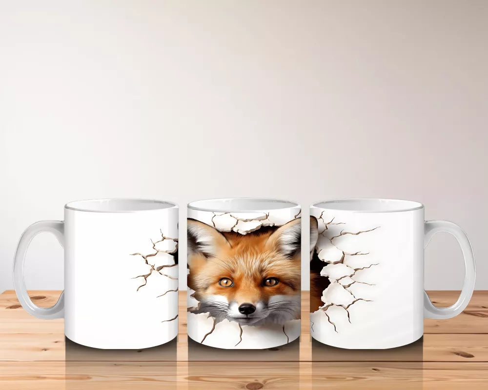 Çatlak zemin arasından dikkatle bakan kızıl tilki, zarif ve yabanî havasıyla dikkat çekiyor. Doğa temalı, asil ve estetik bir kupa tasarımı arayanlara özel.