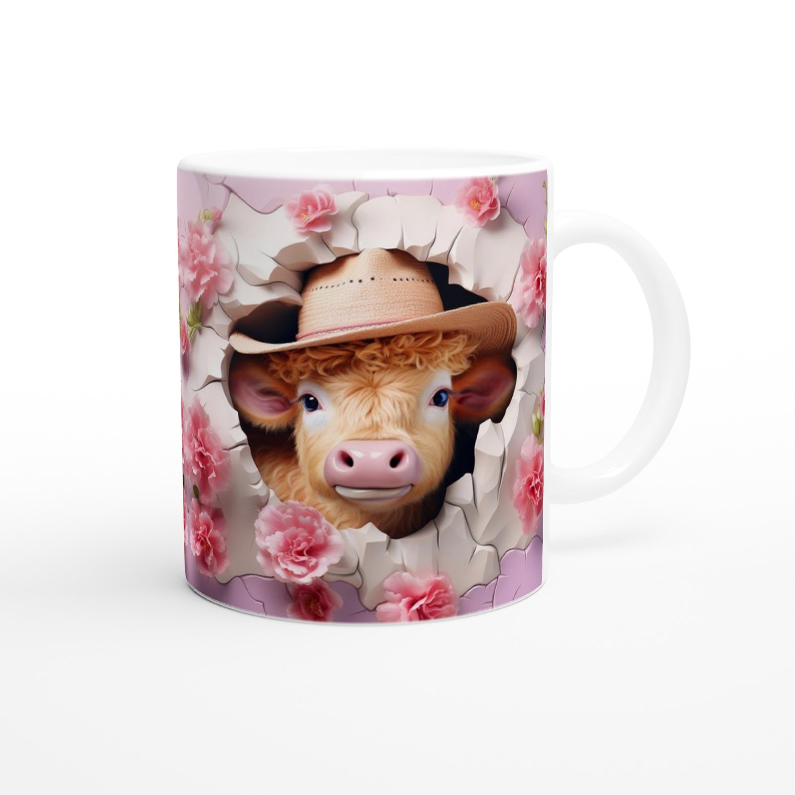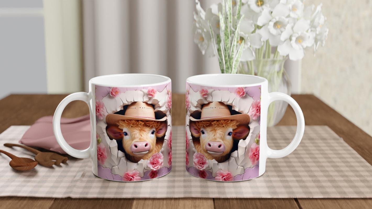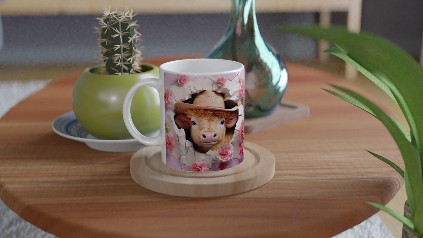 Kır Pembe Çiçekler Arasında Kovboy Şapkalı İnek Temalı Baskılı Kupa Bardak, çatlak duvar efektiyle dikkat çekerken, pembe tonlardaki çiçeklerle romantik bir hava katıyor. Kovboy ruhunu sevenler ve doğa temasını yaşam alanına taşımak isteyenler için özgün bir seçenek.
