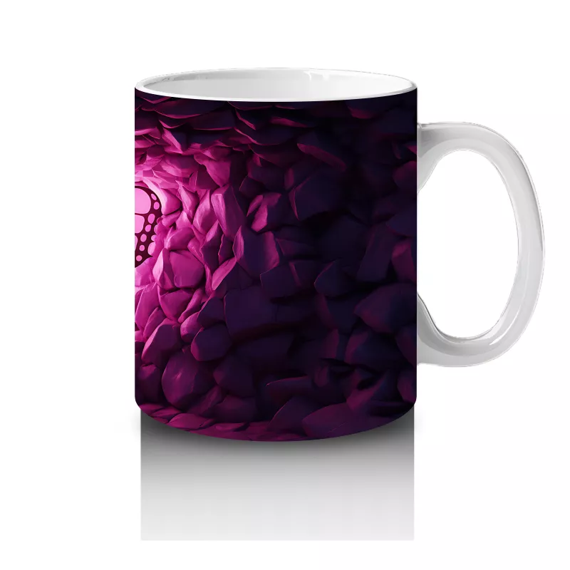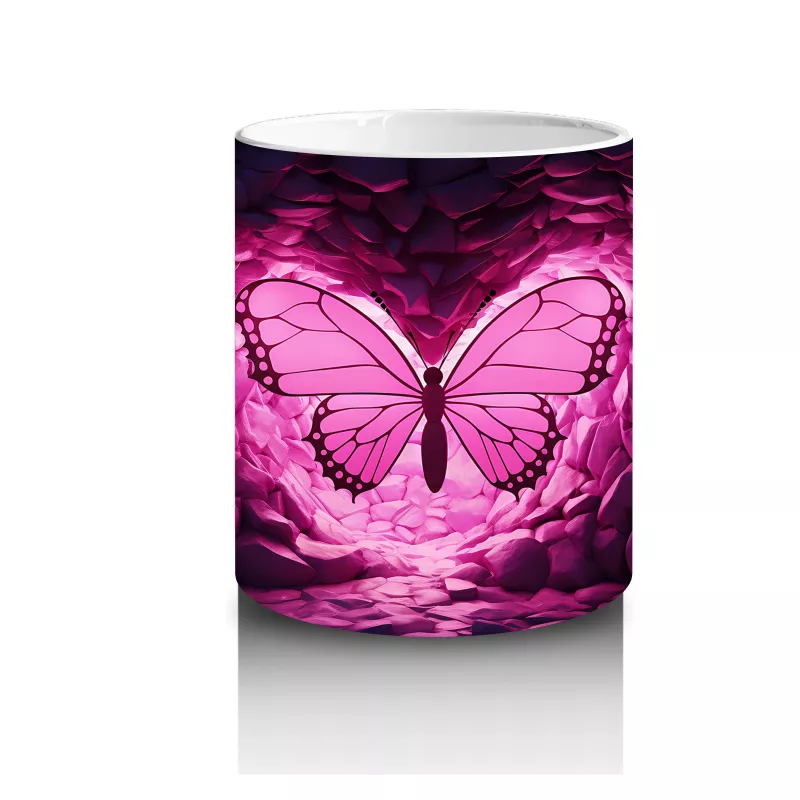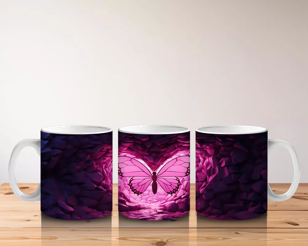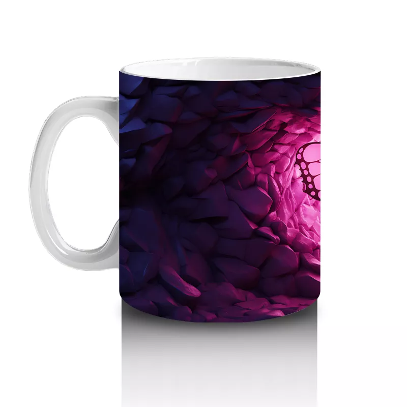 Mor Kristaller Arasında Parlayan Pembe Kelebek – Baskılı Kahve Kupası