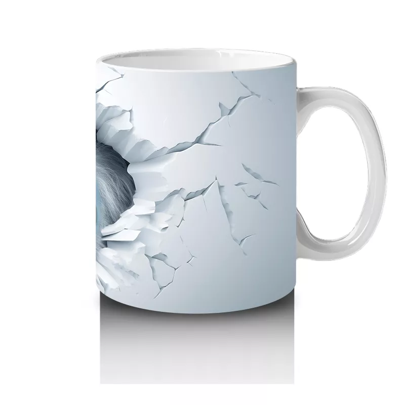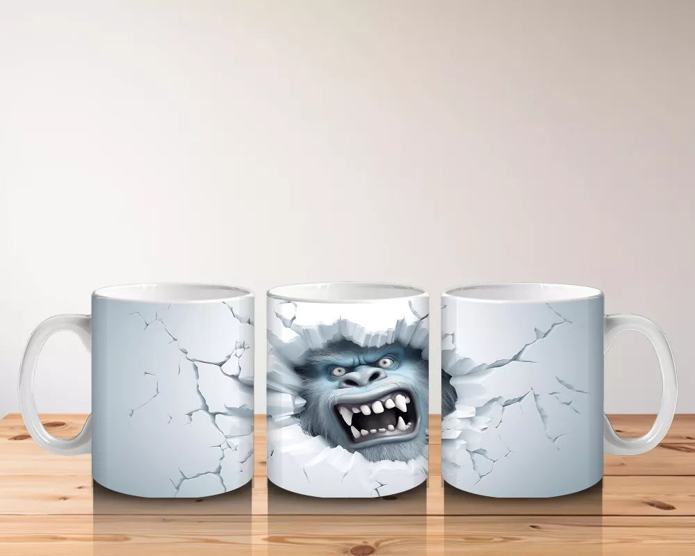 Çatlak duvar arasında kükreyen yaratık figürü, dramatik ve güçlü bir görünüm sunuyor. Cesur ve dikkat çekici tasarımları tercih edenler için etkileyici bir kupa.