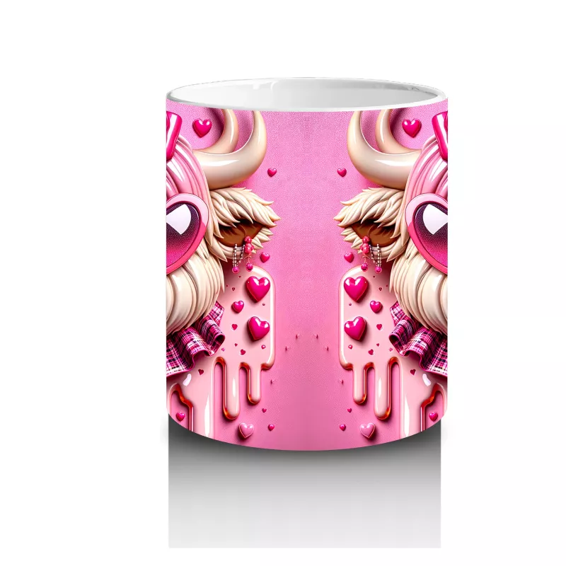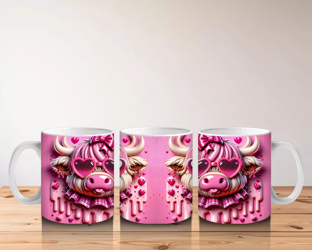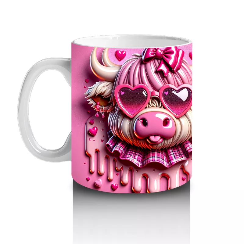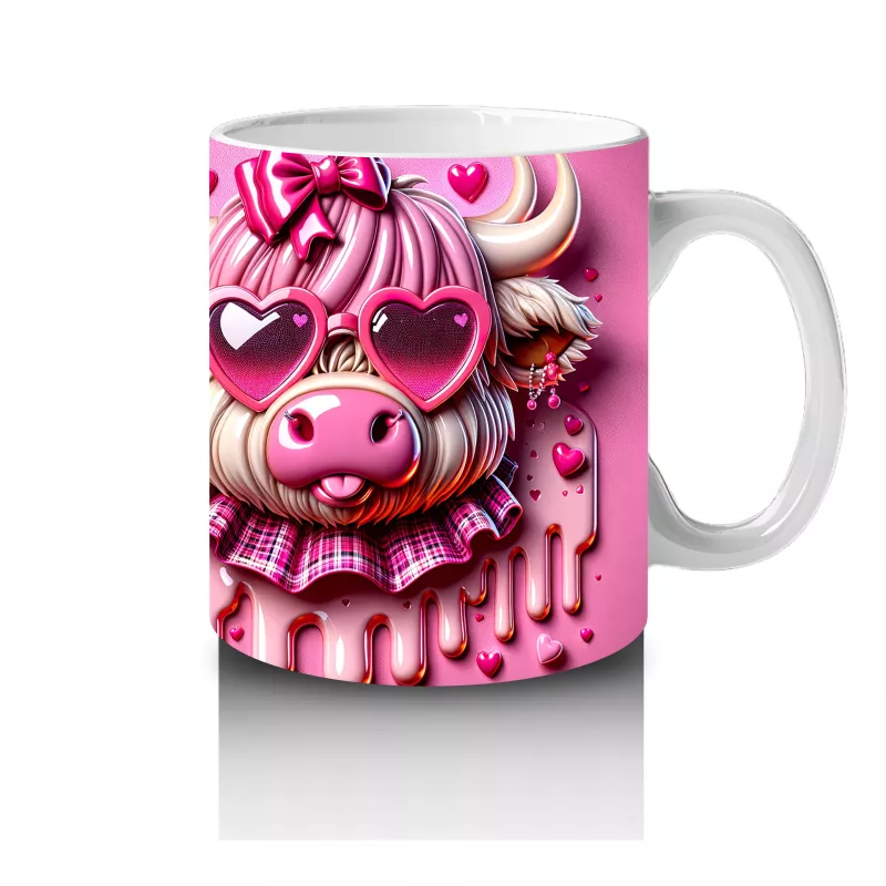 Pembe Fon Üzerinde Kurdeleli Sevimli Buzağı – Baskılı Kahve Kupası