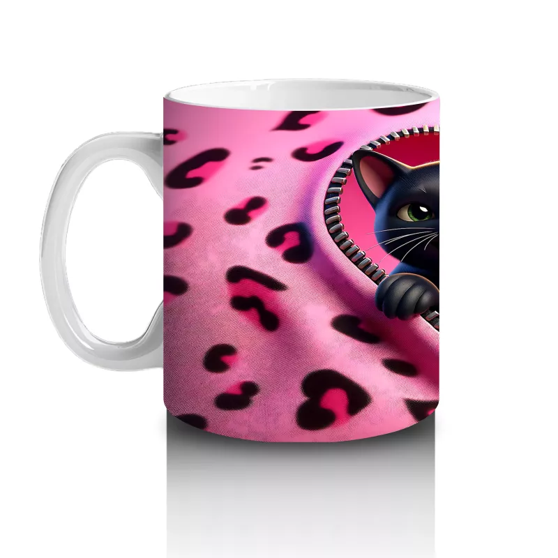 Leopar Desenli Kalpli Zeminde Sarılmış Siyah Kediler – Baskılı Kahve Kupası