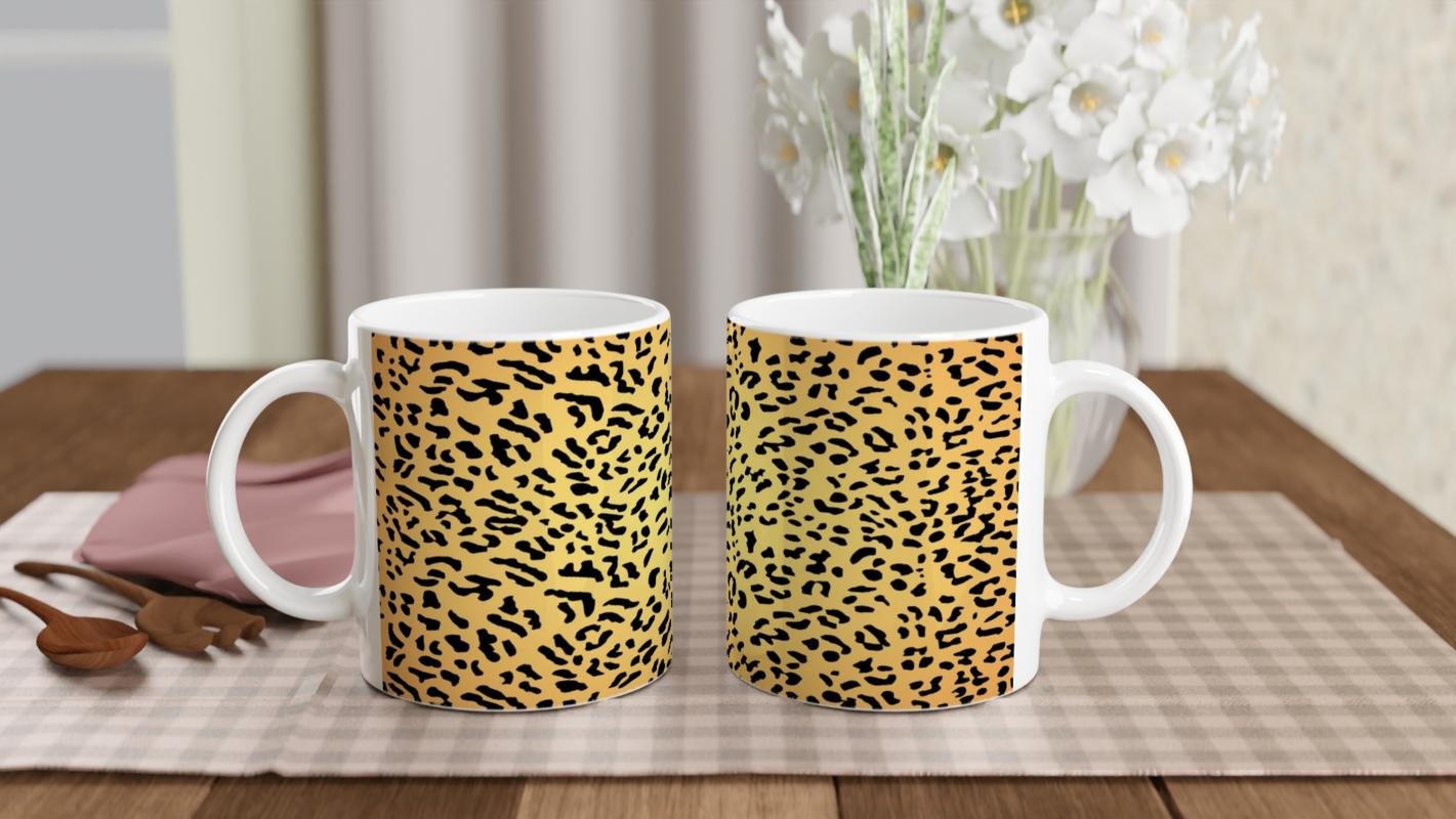 Leopar Desenli Modern Tarz Baskılı Kupa Bardak, sıcak sarı tonlar üzerine siyah desenlerle güç ve şıklığı bir araya getiriyor. Cesur ve dikkat çekici tasarımıyla özgüvenli tarzınızı yansıtmanın en zarif yolu.