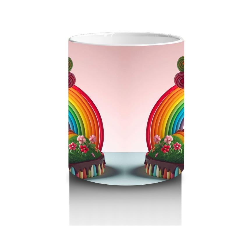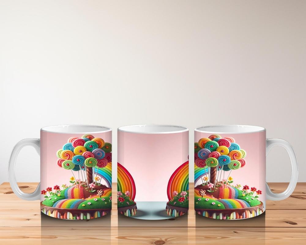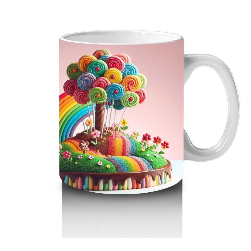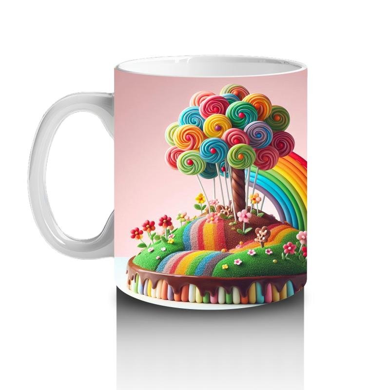 Çocuklara sütü sevdiren Lolipop Ağaçlı Gökkuşağı Ada Kupa Bardak tasarımlı kupa bardak. Neşeli, eğlenceli ve özel anlar için ideal hediye seçeneği.