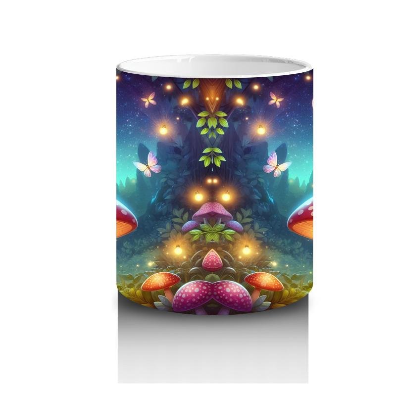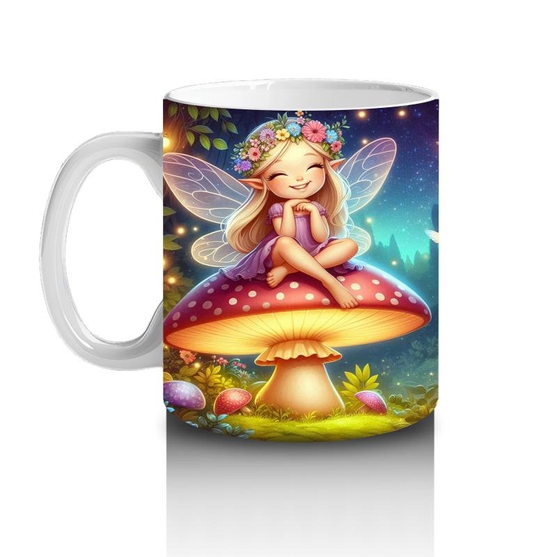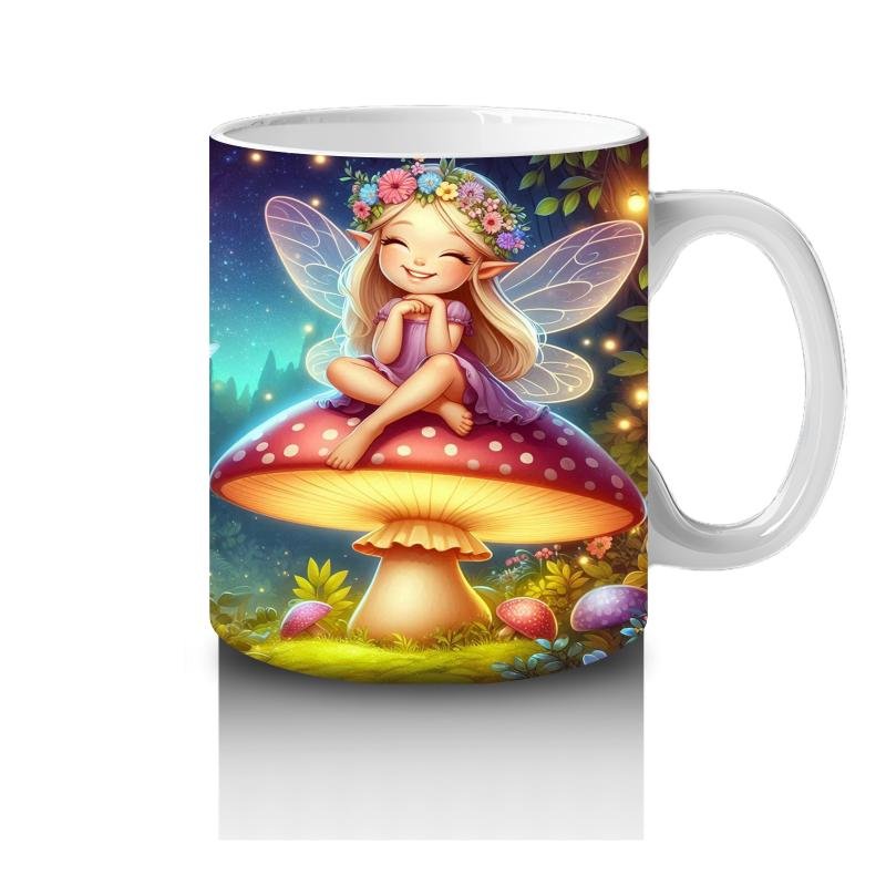 Çocuklara Sütü Sevdiren Mantar Üstünde Oturan Çiçek Taçlı Peri Desenli Kupa Bardak