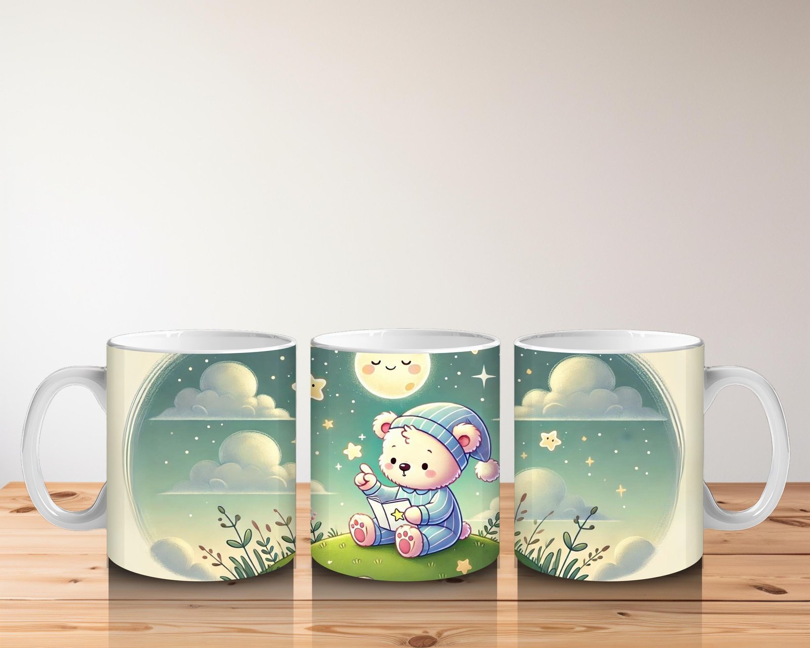 Çocuklara Sütü Sevdiren Gece Masalı Okuyan Sevimli Ayıcık Desenli Kupa Bardak