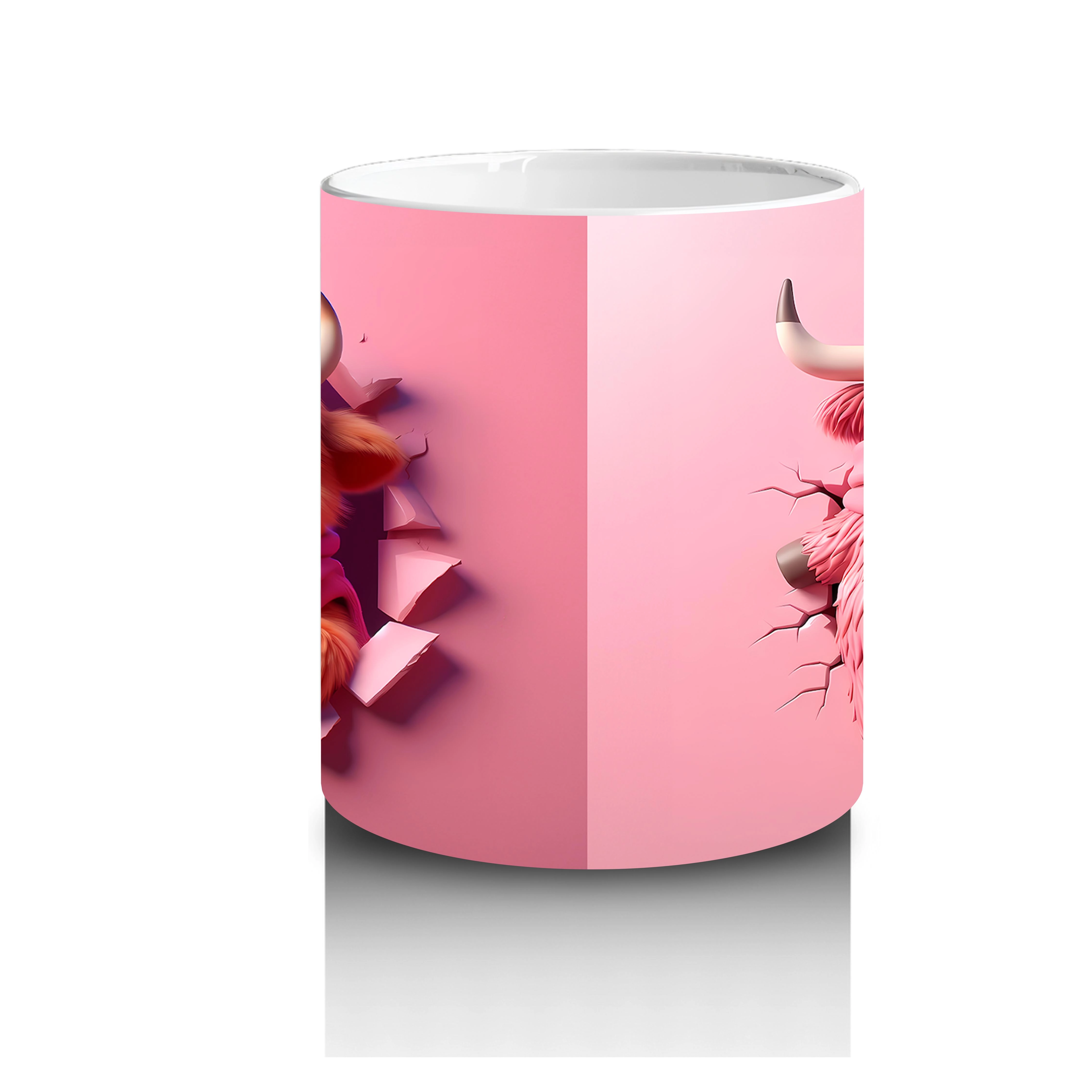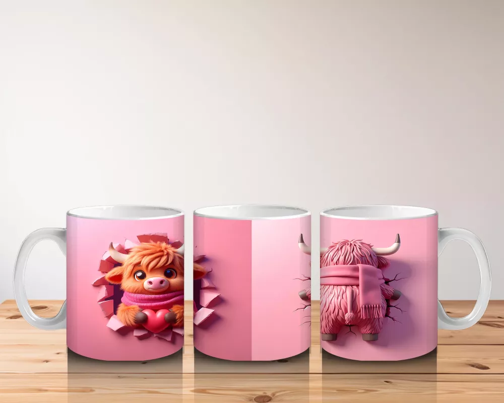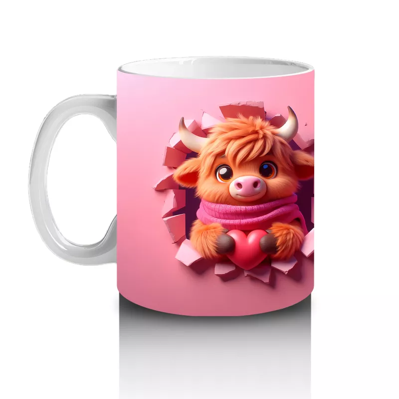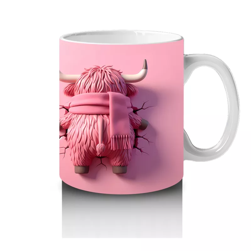 Pembe Fon Üzerinde Sevimli Maskot Buzağı Karakteri – Baskılı Kahve Kupası